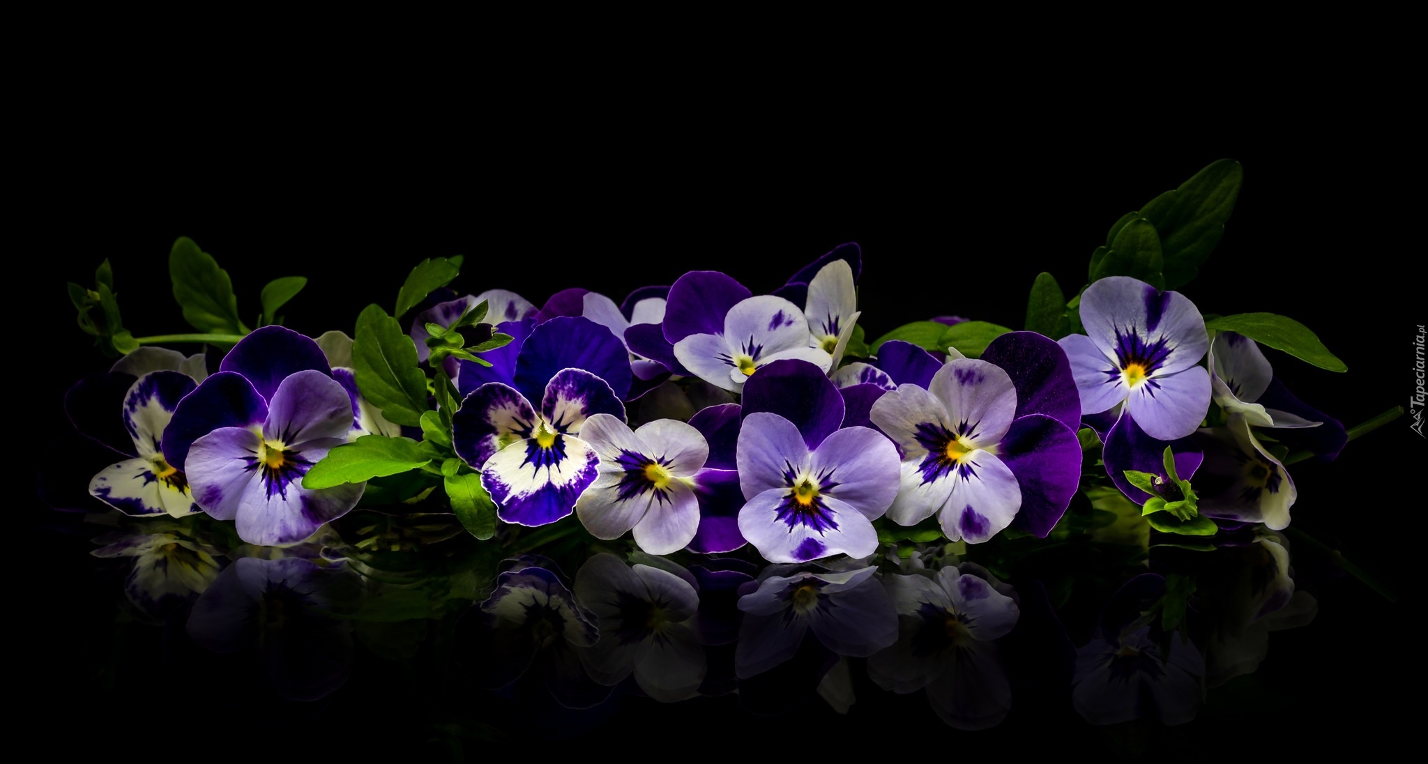 Edytor tapety: Bratki w odbiciu na ciemnym tle