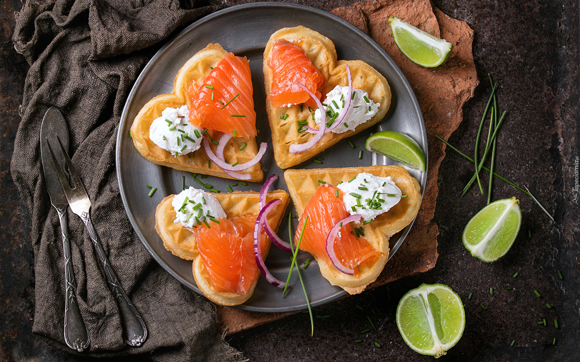 Edytor tapety: Gofry w kształcie serca z łososiem