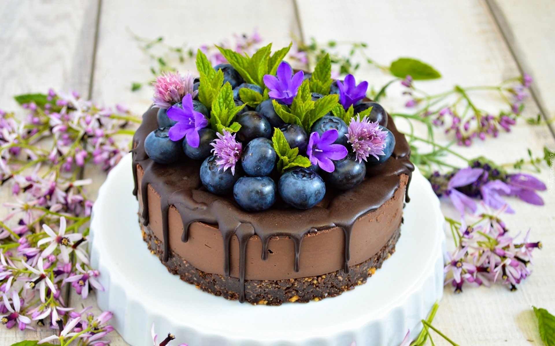 Edytor tapety: Czekoladowe ciastko z polewą i borówkami