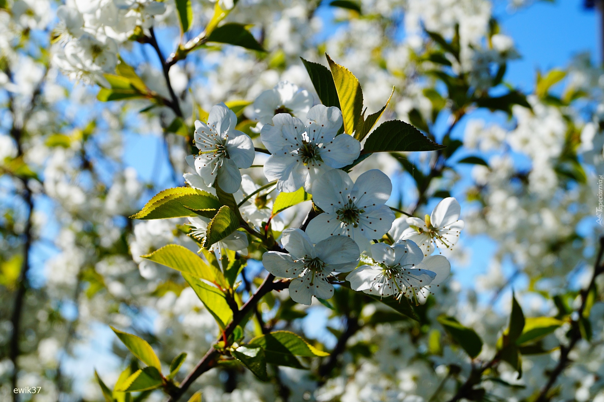 Edytor tapety: Owocowe drzewo z białymi kwiatkami