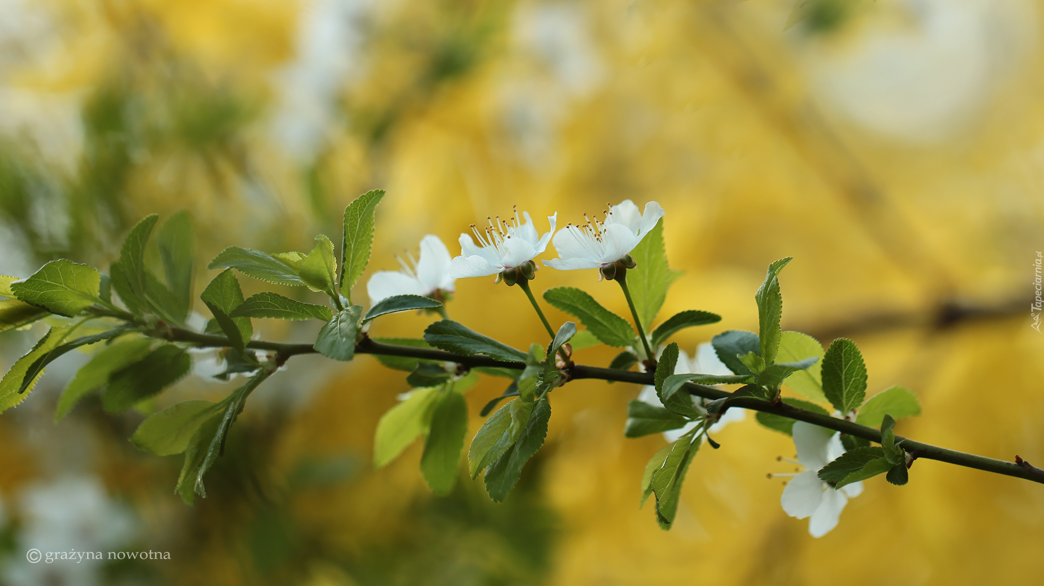 Edytor tapety: Kwitnąca gałązka śliwy mirabelki