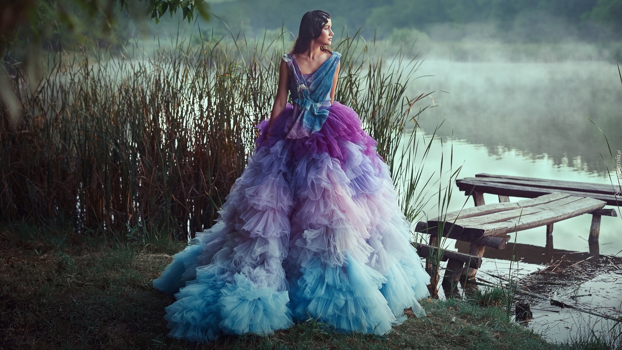 Edytor tapety: Dziewczyna w tiulowej sukience z falbankami