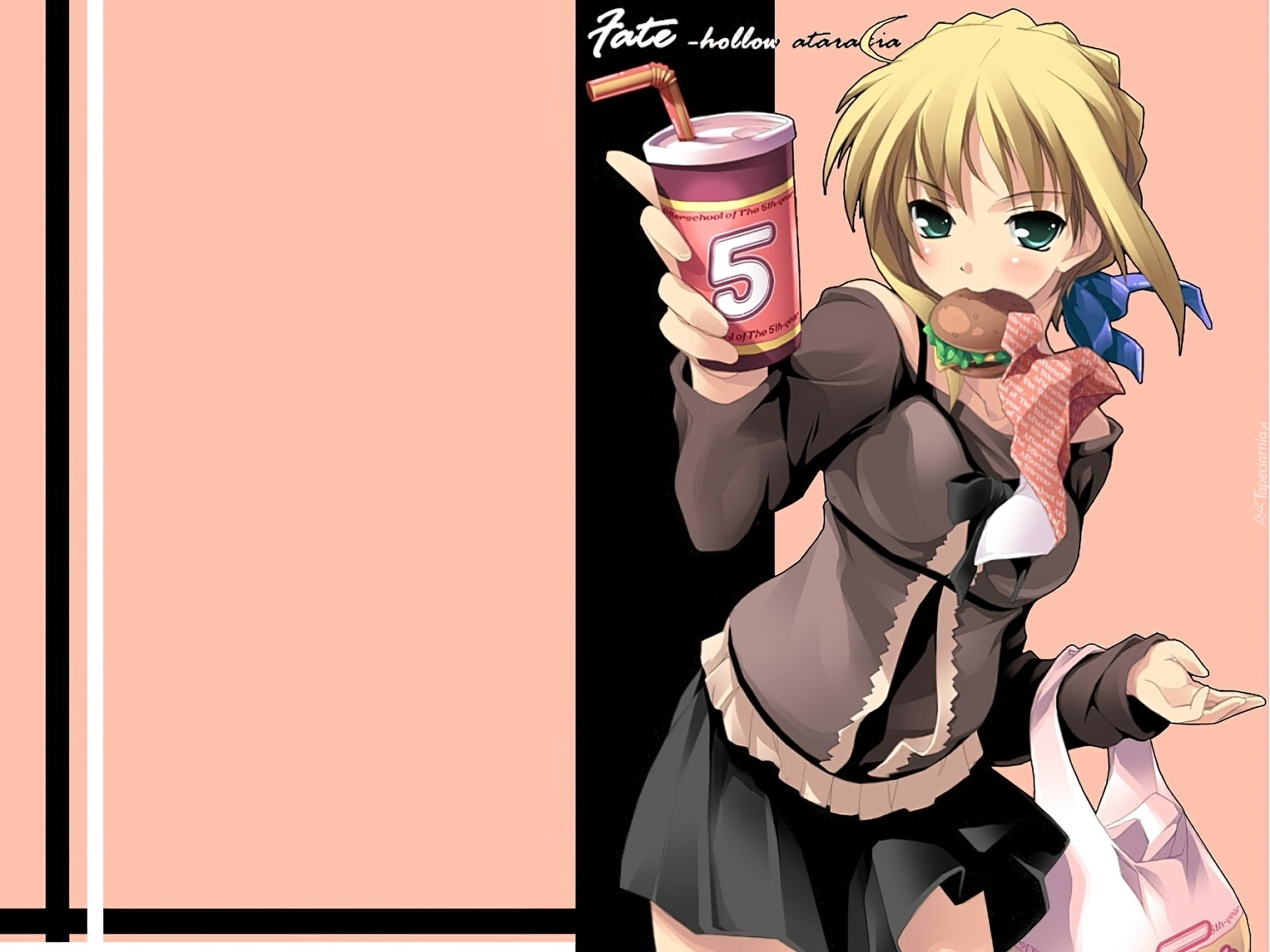 Edytor tapety: dziewczyna, kubek, słomka, Fate Stay Night, hamburger
