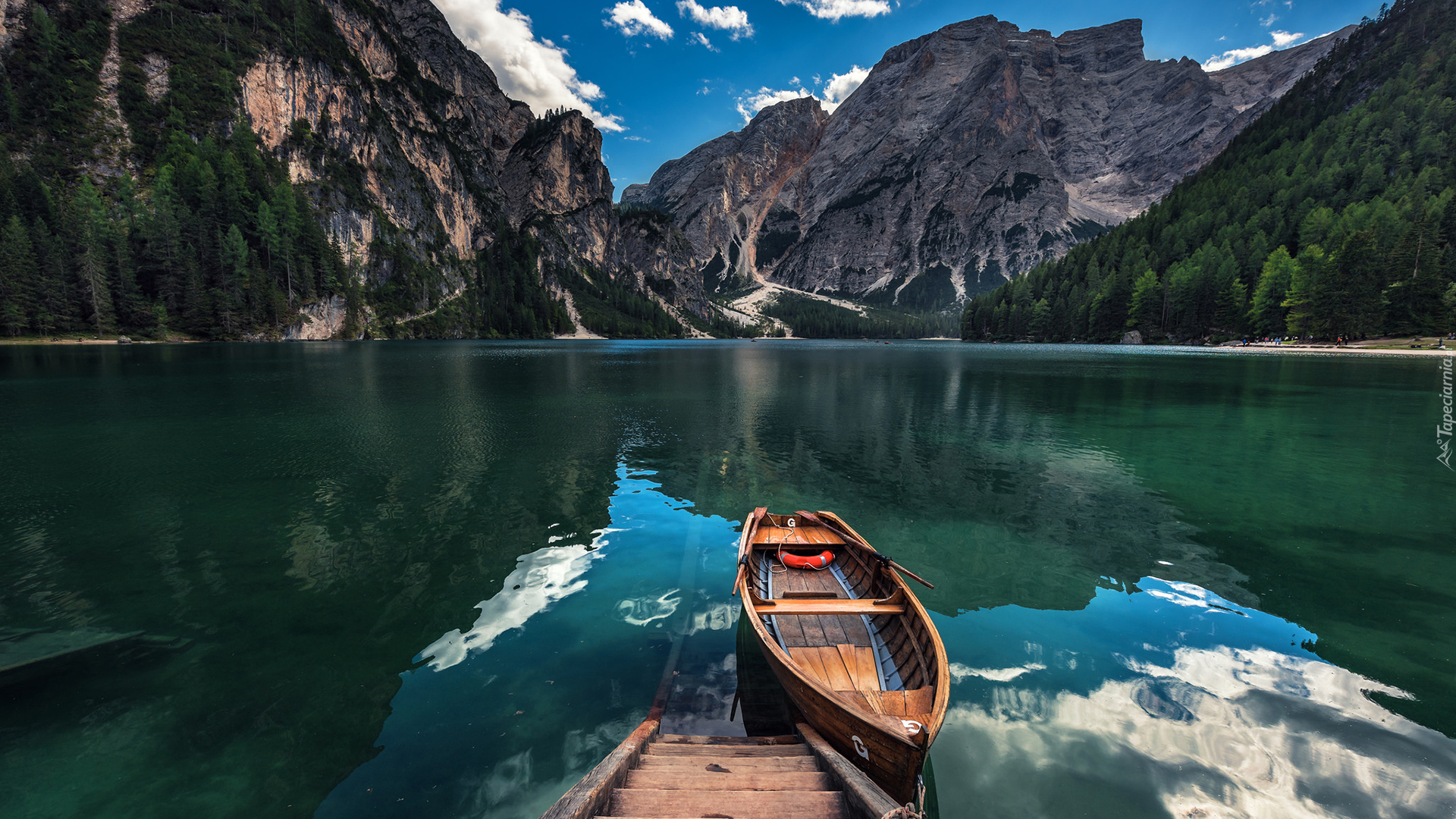 Edytor tapety: Łódka na jeziorze Pragser Wildsee