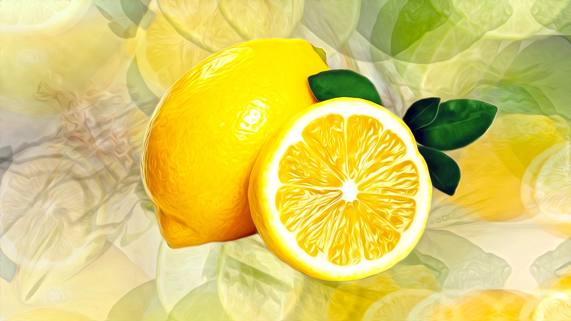 Edytor tapety: Cytryny z listkami w grafice