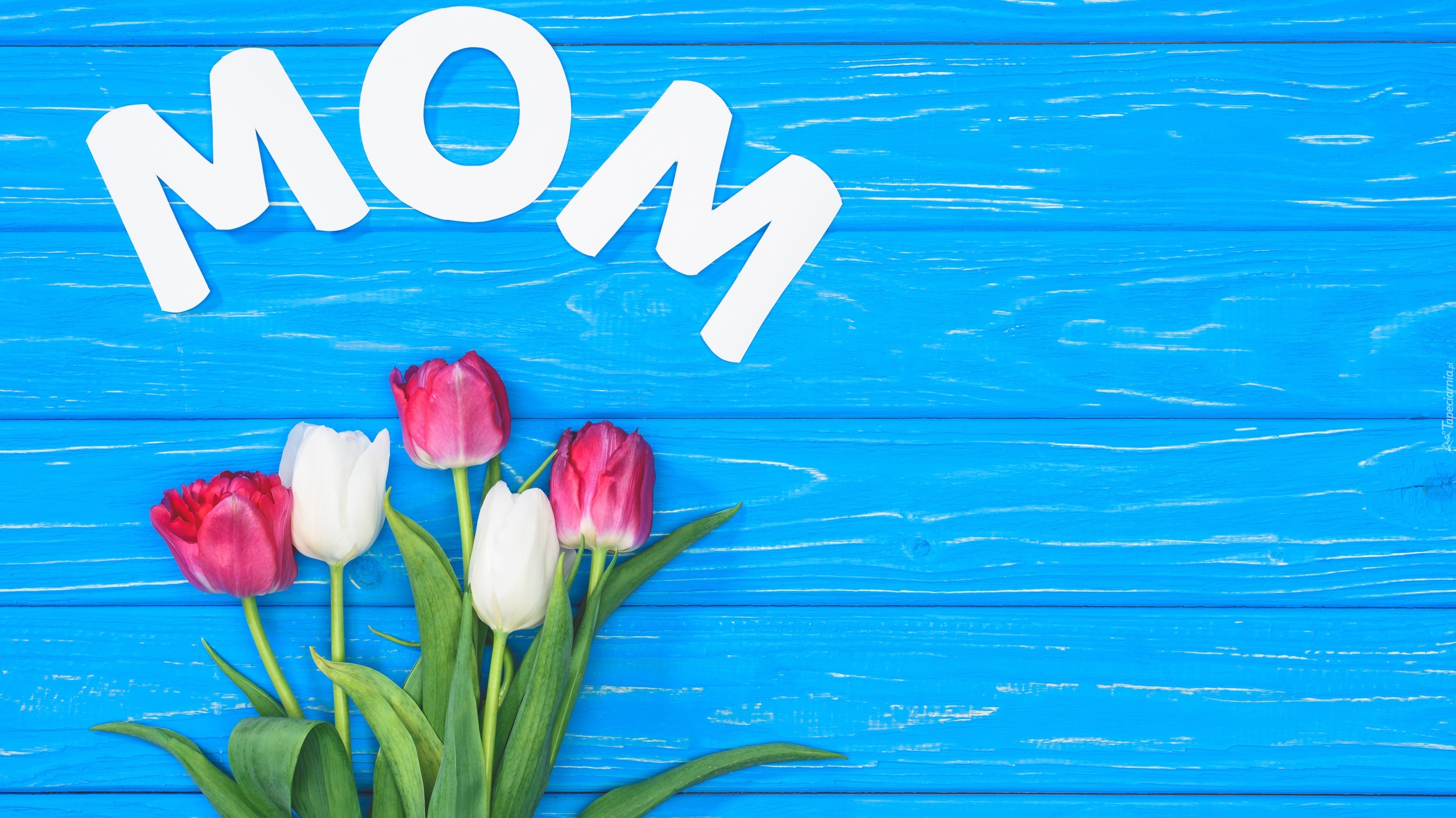 Edytor tapety: Napis Mom z kolorowymi tulipanami