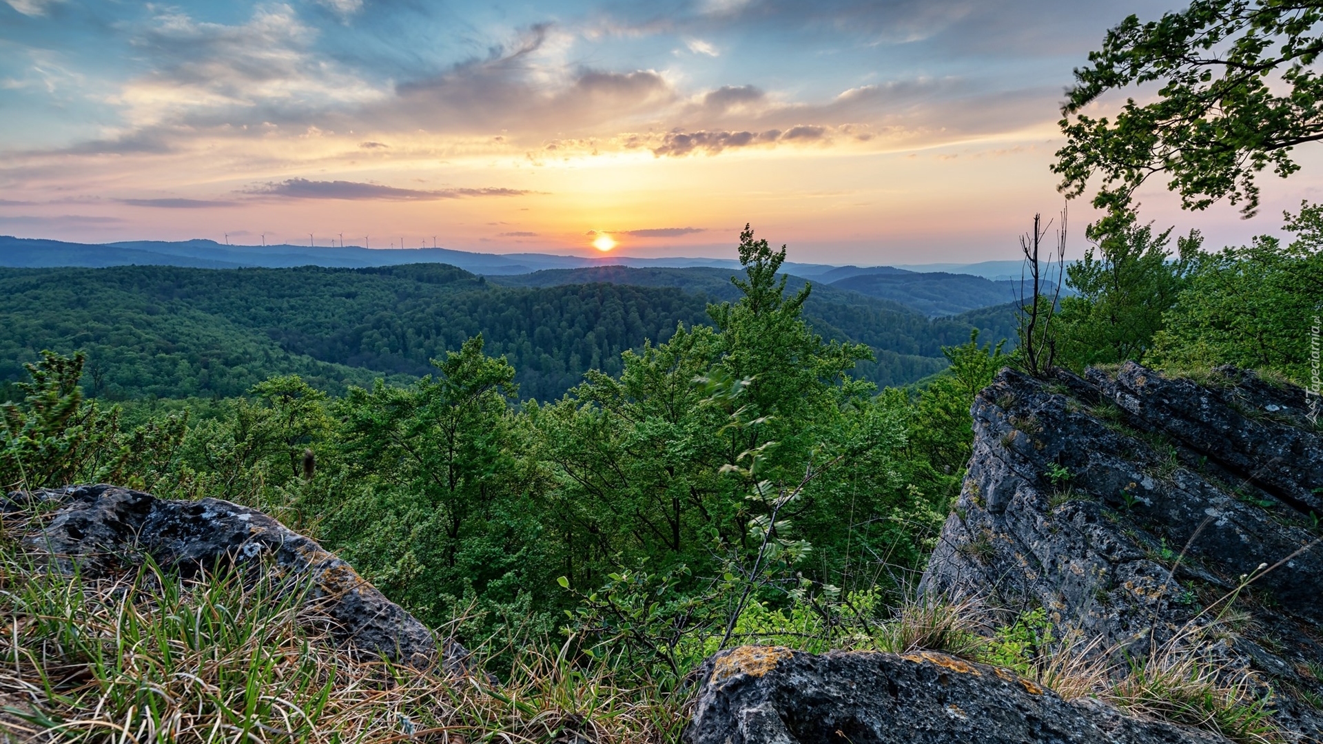 Edytor tapety: Wschodzące słońce nad wzgórzami