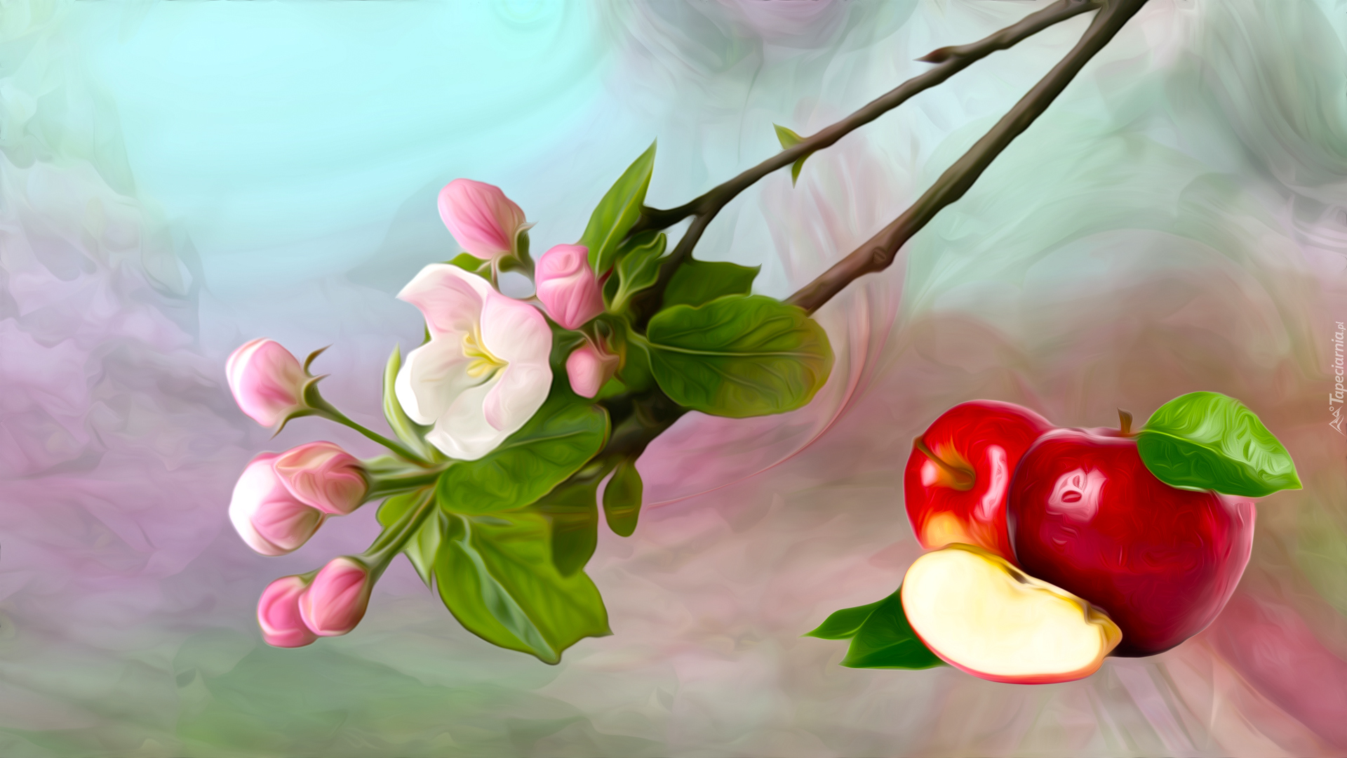 Edytor tapety: Gałązka jabłoni i jabłuszka