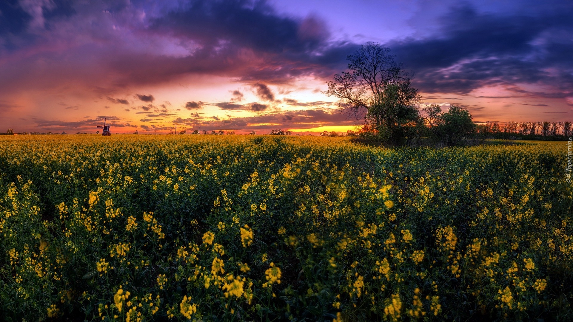 Edytor tapety: Zachód słońca nad polem