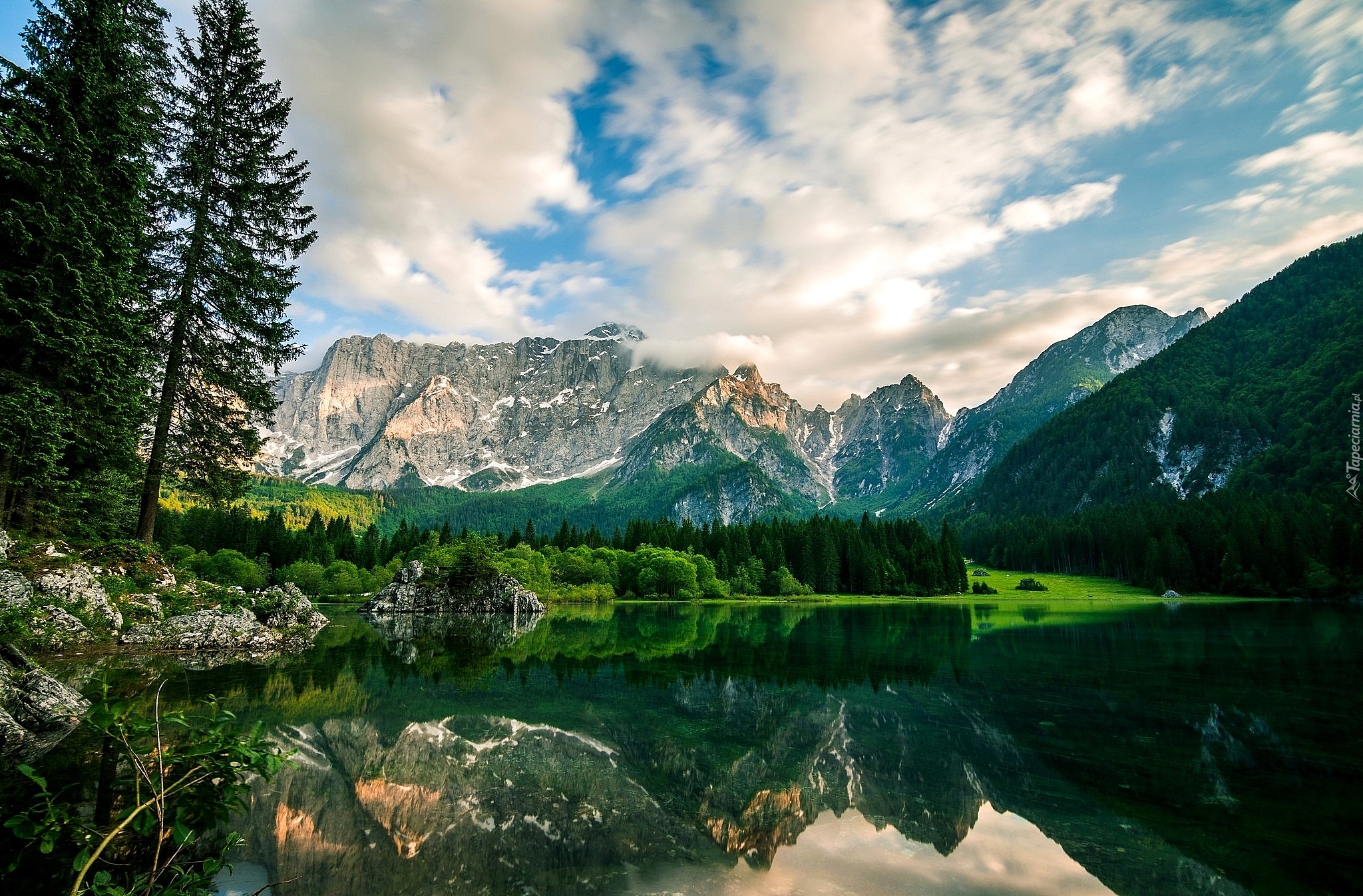 Edytor tapety: Odbijające się góry w jeziorze