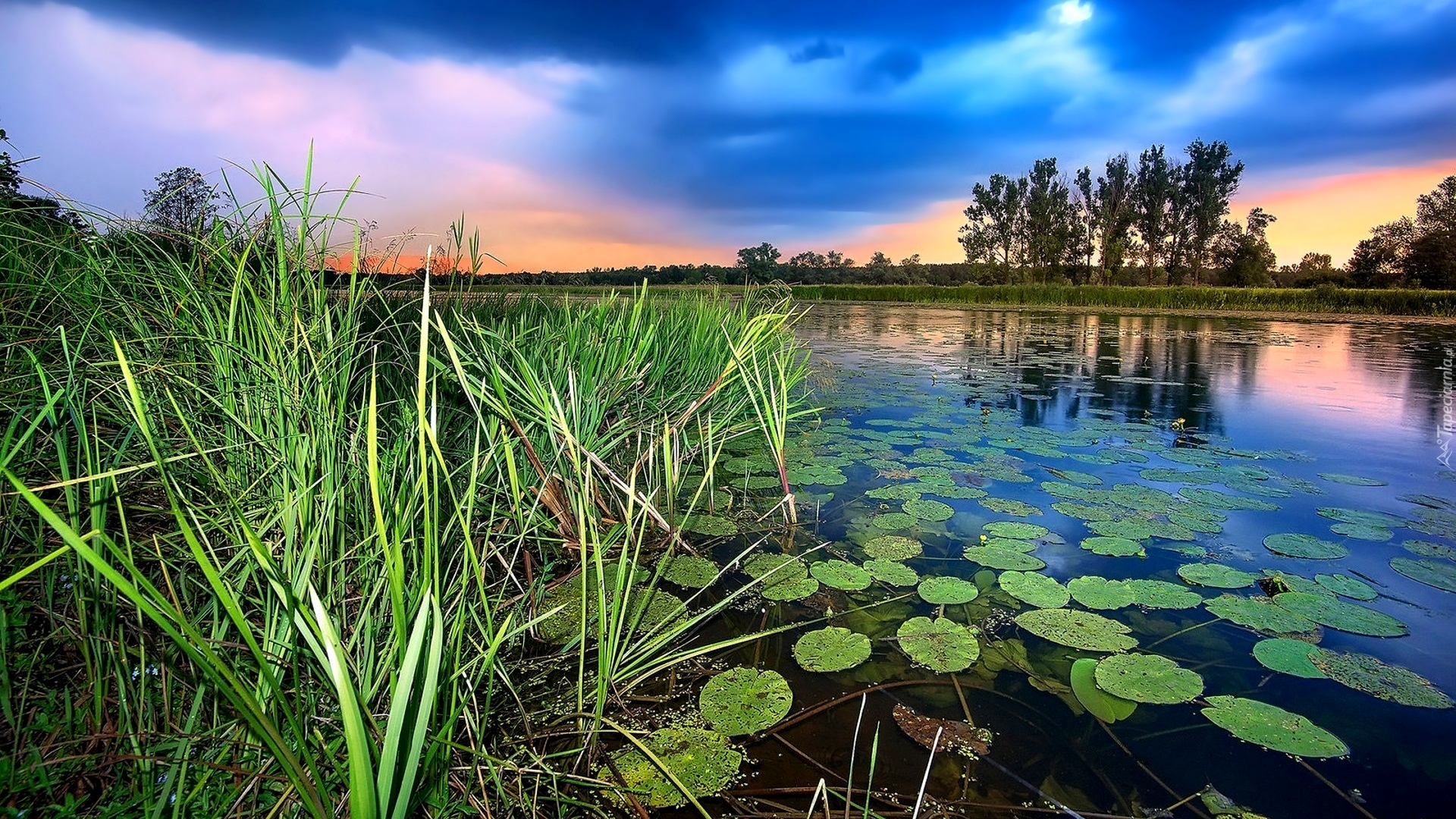 Edytor tapety: Trzciny nad stawem