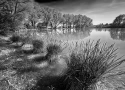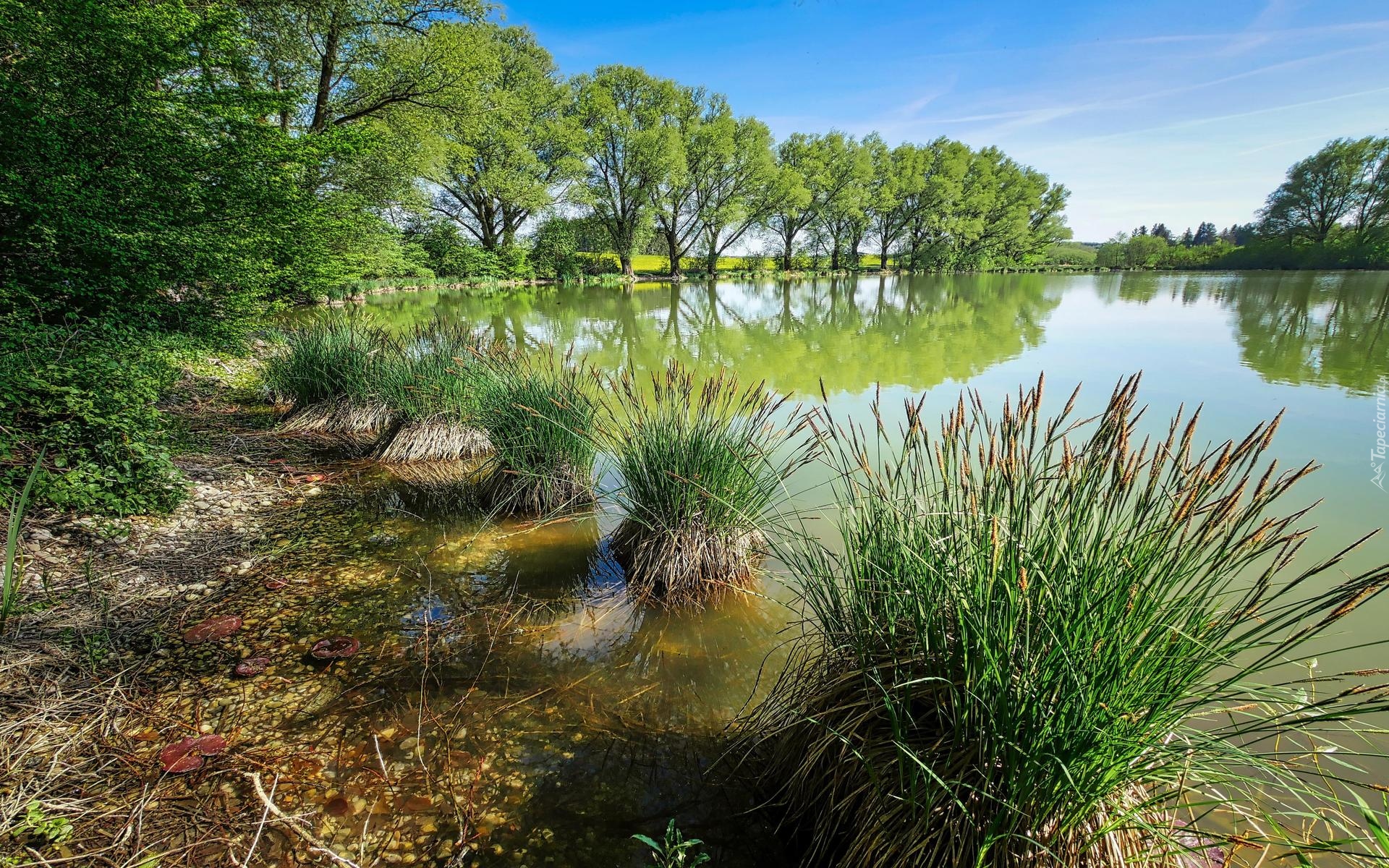 Edytor tapety: Trzciny porastające brzeg jeziora