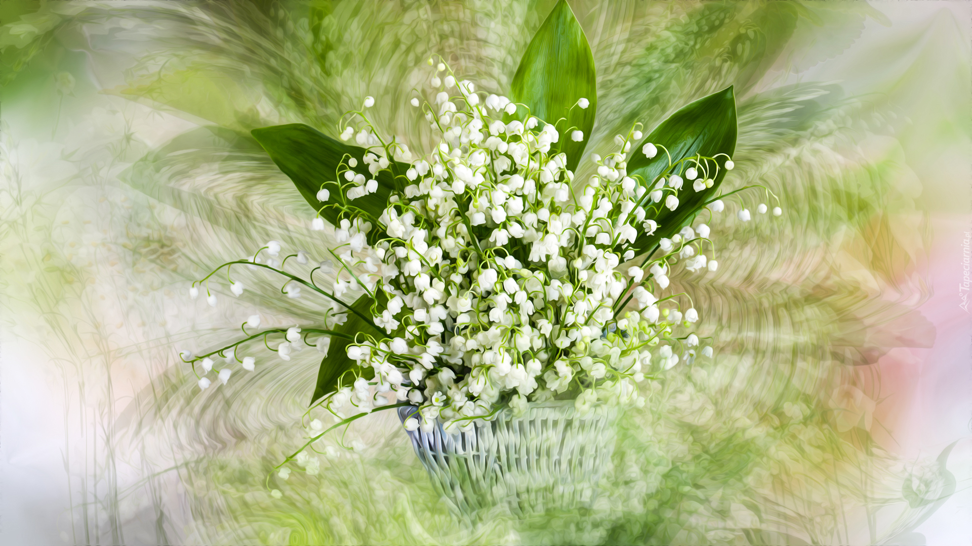Edytor tapety: Bukiecik konwalii w koszyczku