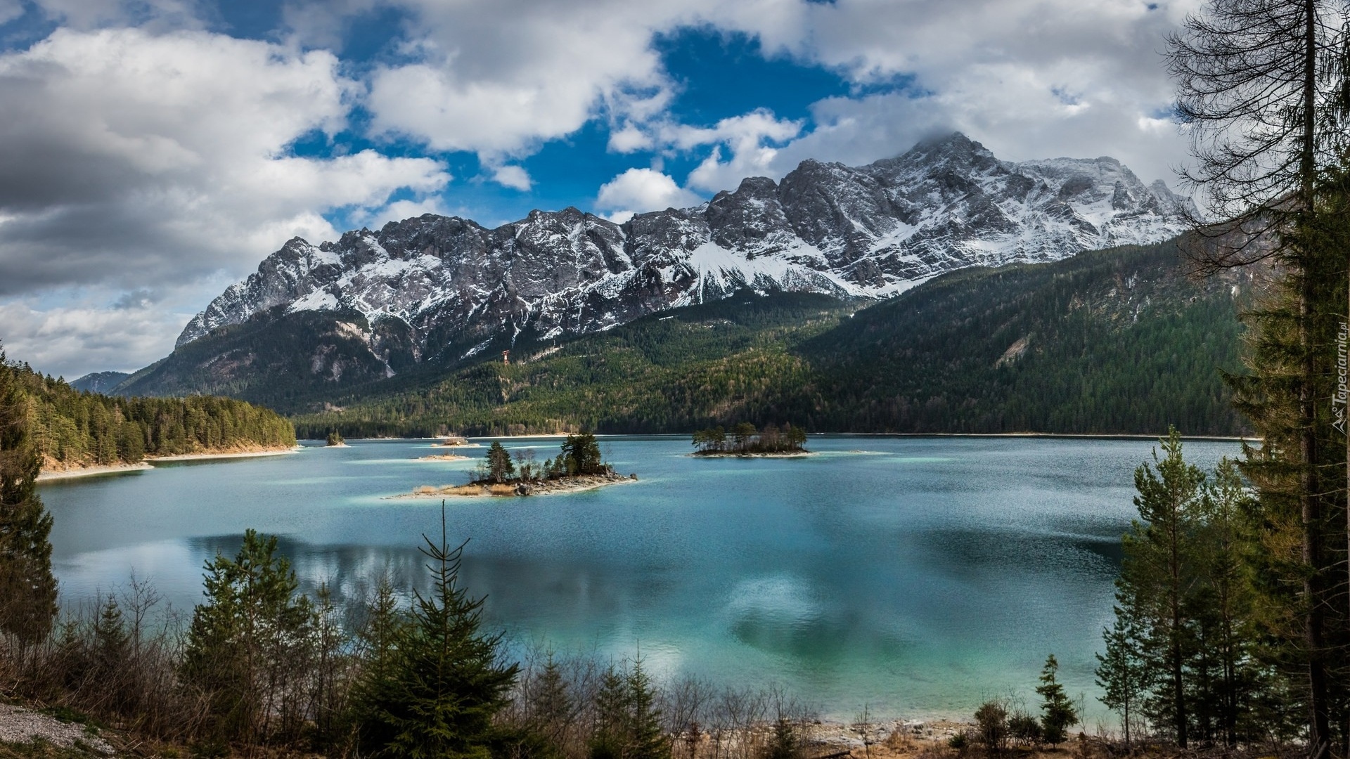Edytor tapety: Małe wysepki na górskim jeziorze