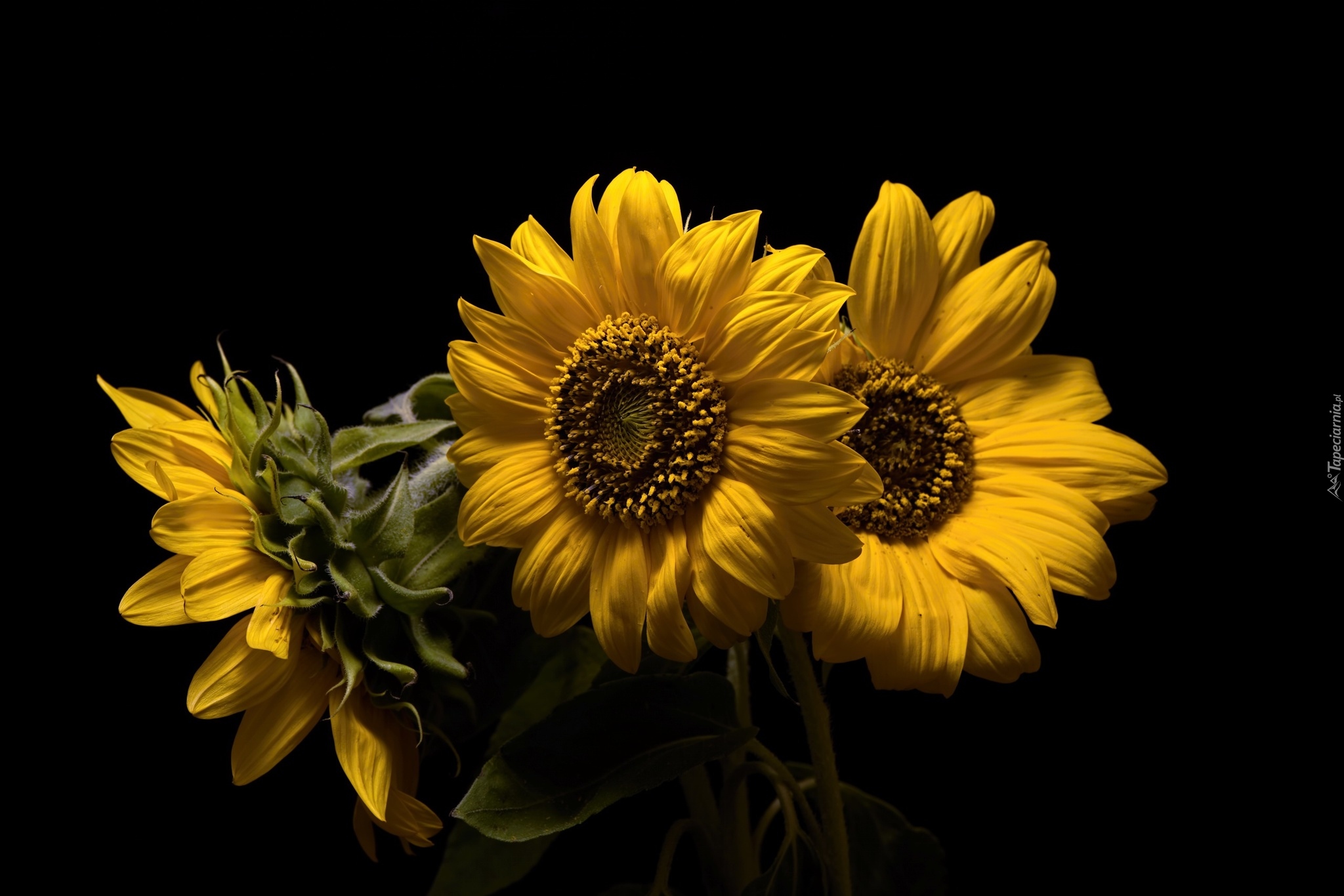 Edytor tapety: Słoneczniki na ciemnym tle