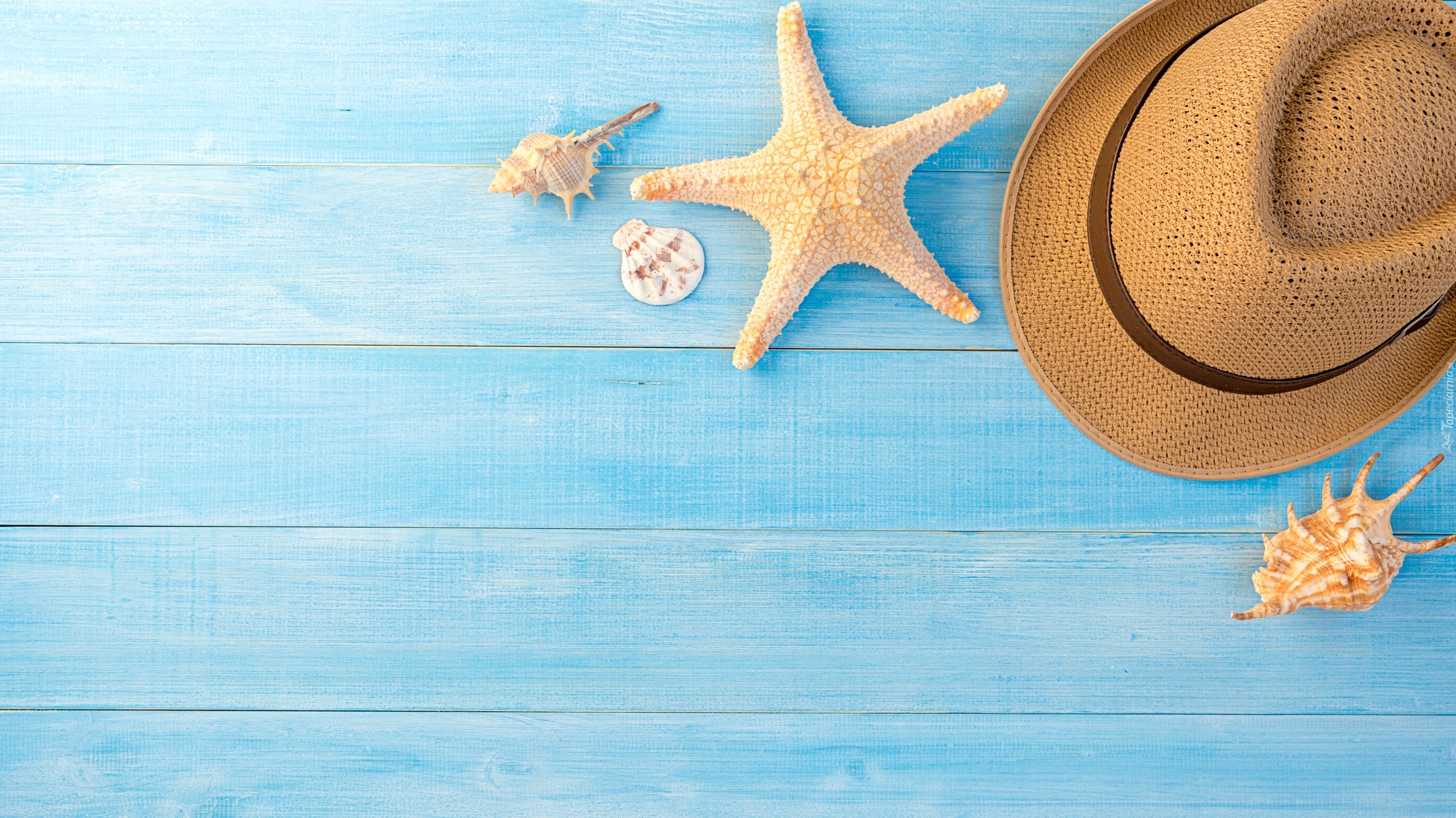 Edytor tapety: Rozgwiazda i muszelki obok kapelusza