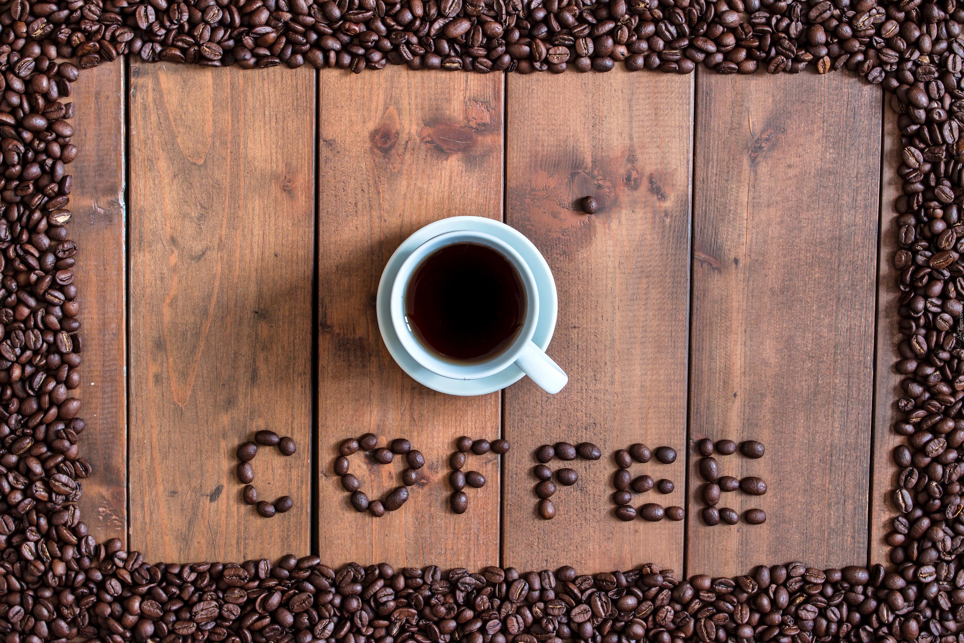 Edytor tapety: Ziarna kawy wokół filiżanki