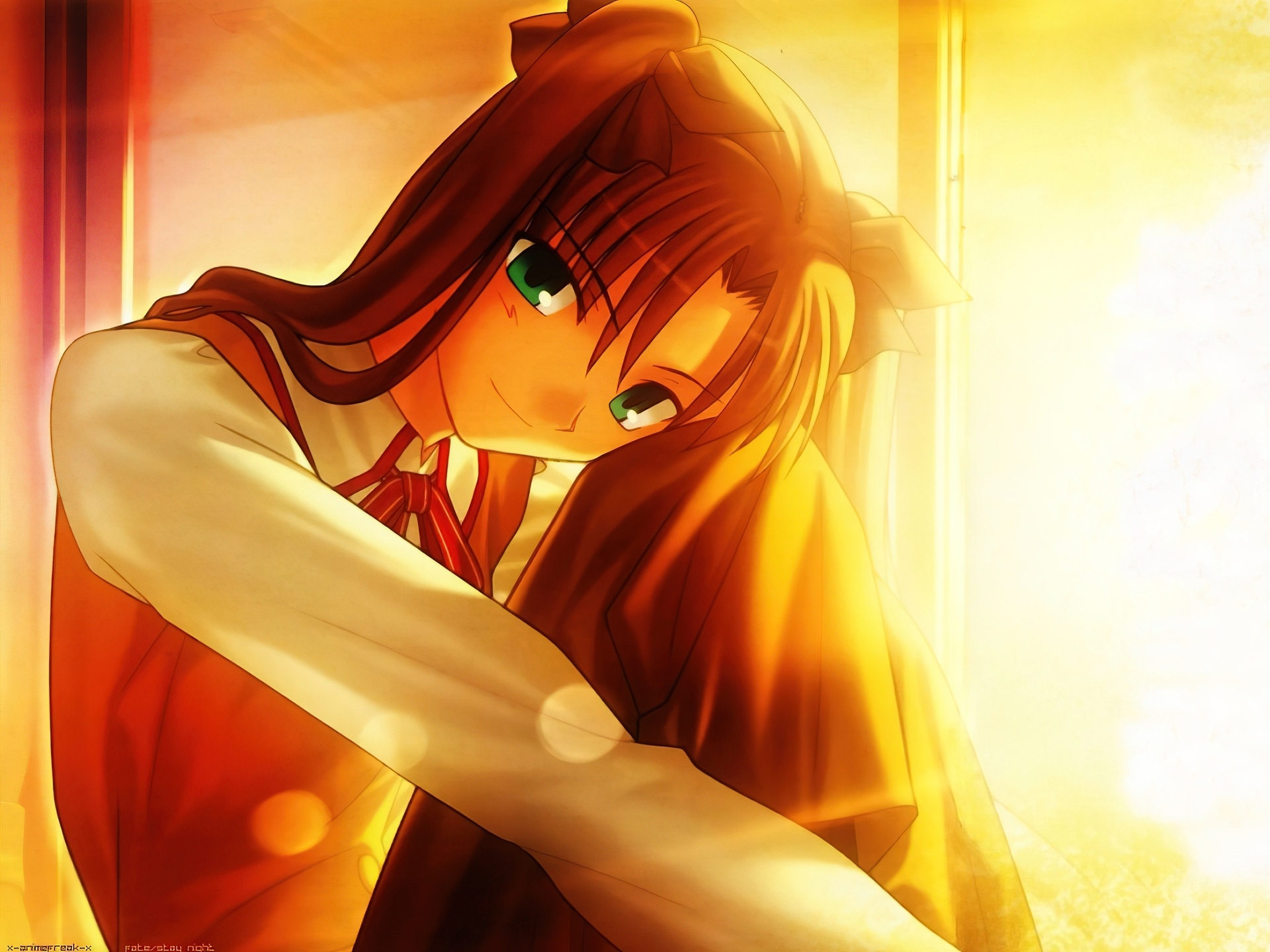 Edytor tapety: oczy, dziewczyna, siedzi, Fate Stay Night