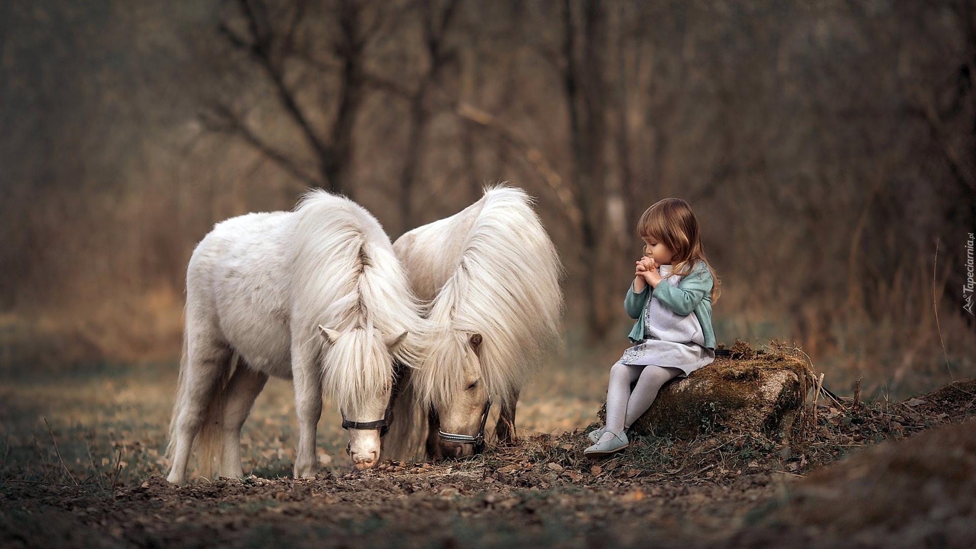 Edytor tapety: Dziewczynka z kucykami w lesie
