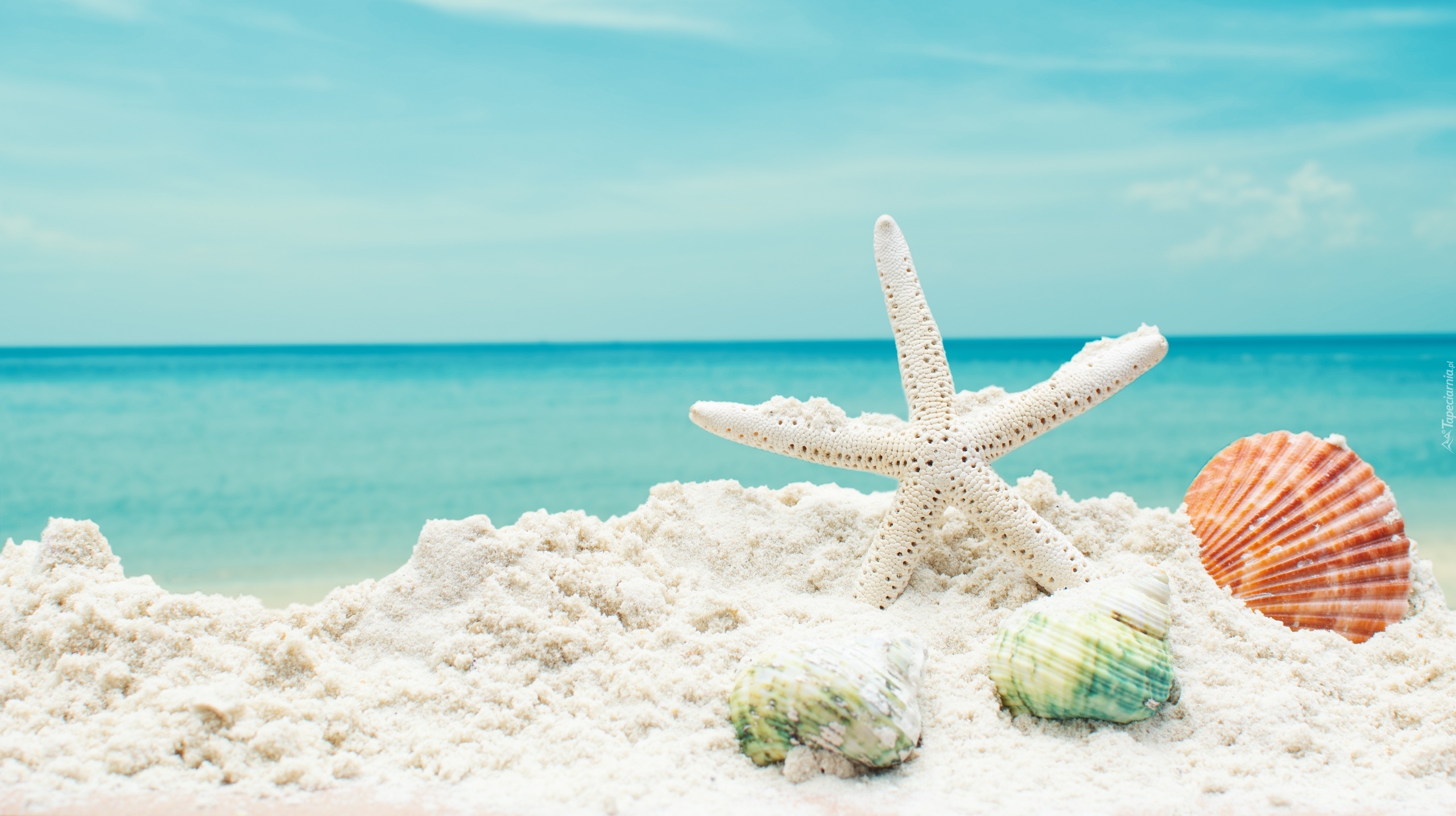 Edytor tapety: Rozgwiazda z muszelkami na piasku
