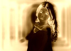 Edytor tapety: Długowłosa dziewczyna w białej bluzce