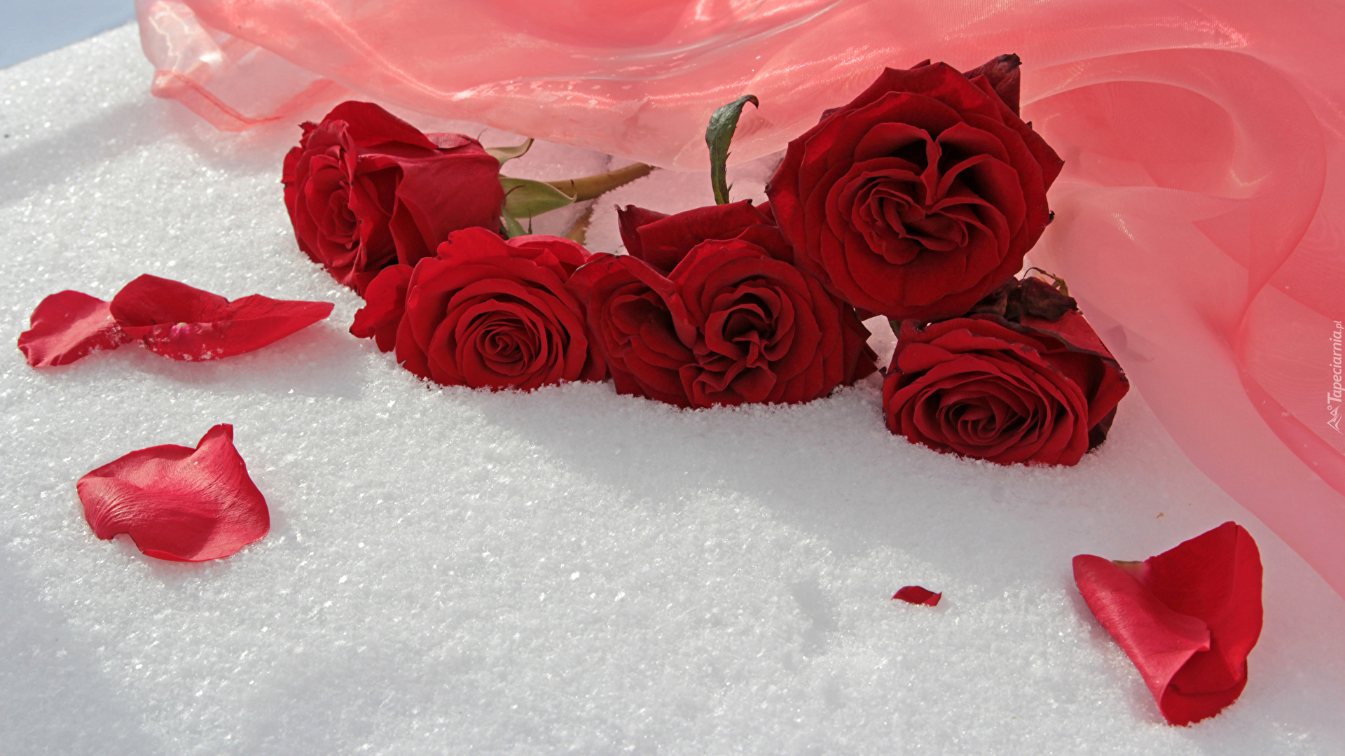 Edytor tapety: Czerwone róże i płatki na śniegu