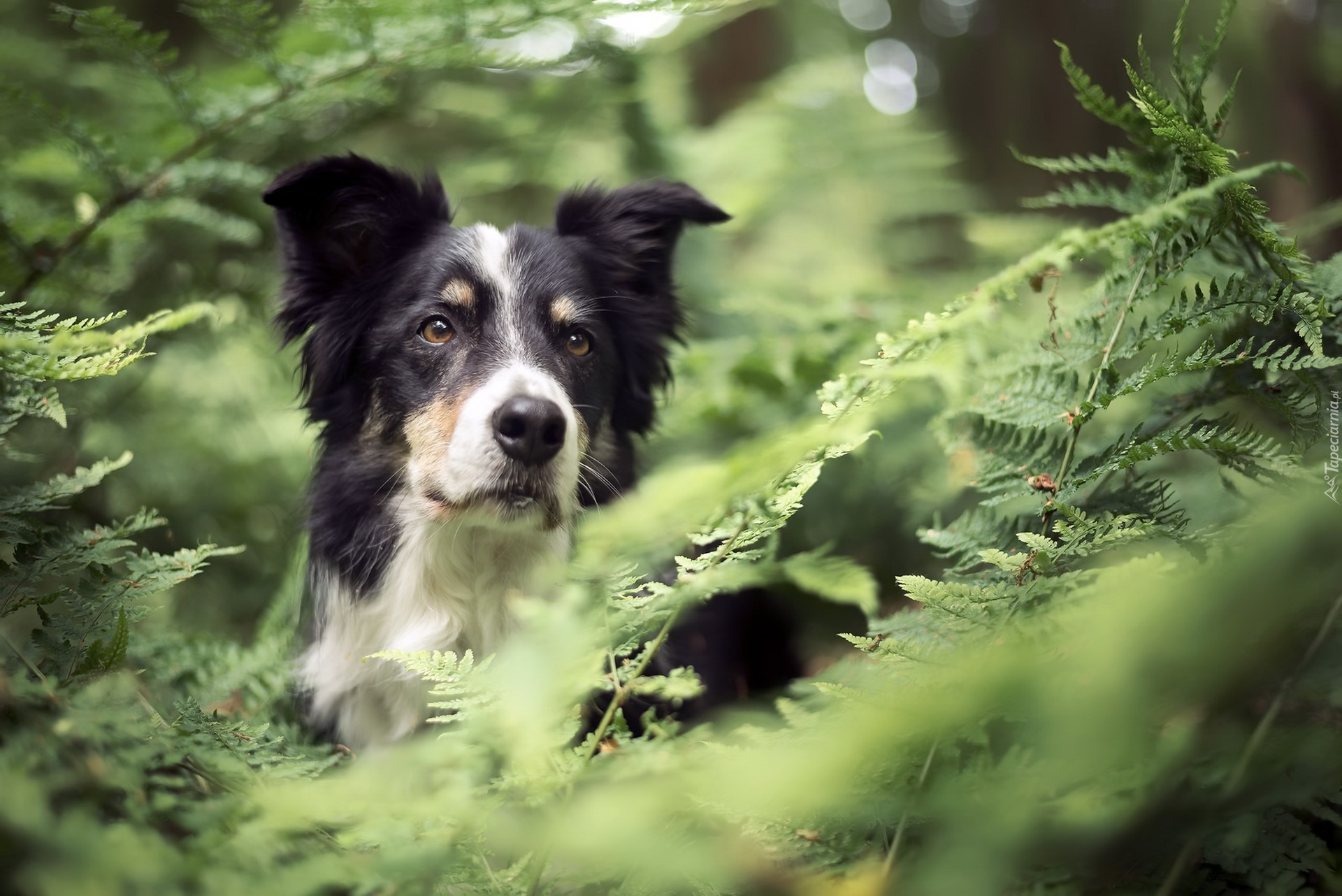 Edytor tapety: Border collie w paprociach