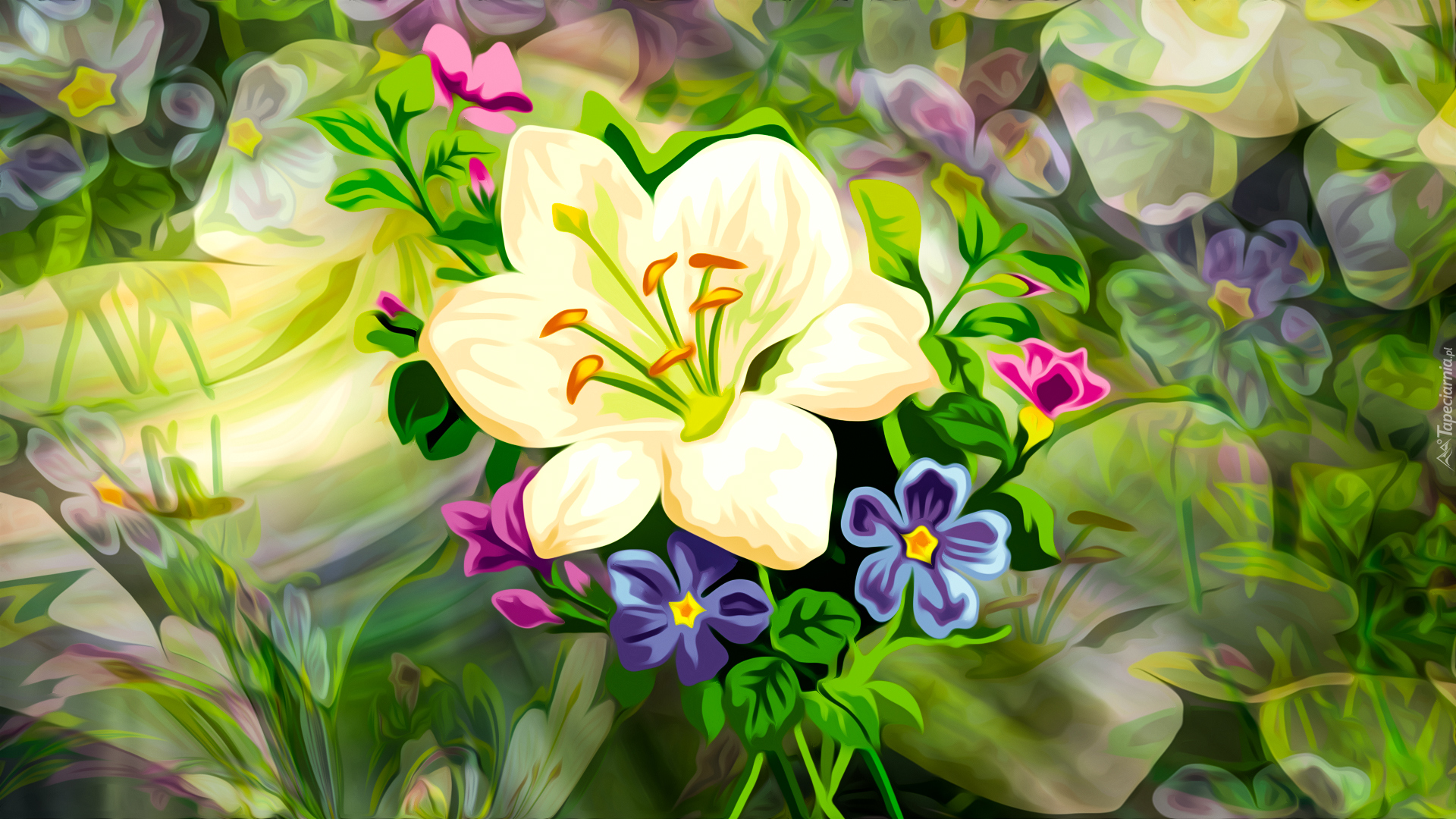 Edytor tapety: Grafika z kolorowymi kwiatami
