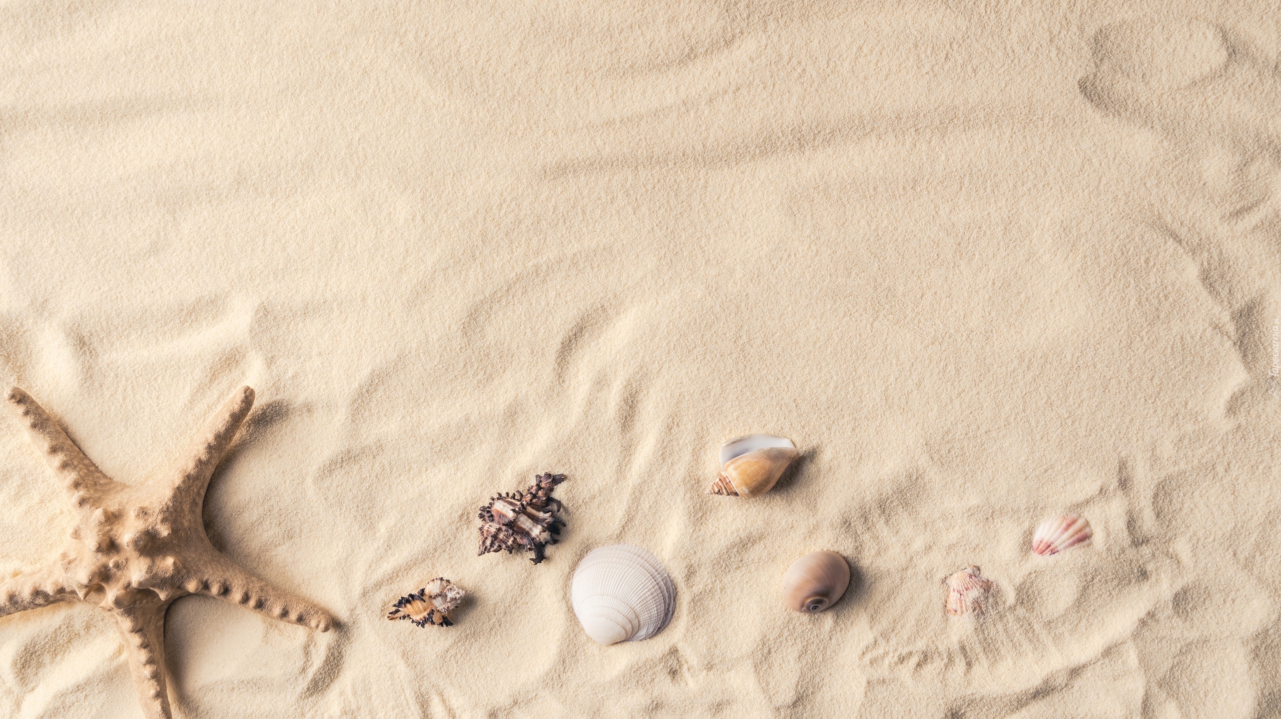 Edytor tapety: Rozgwiazda z muszelkami ułożone na piasku