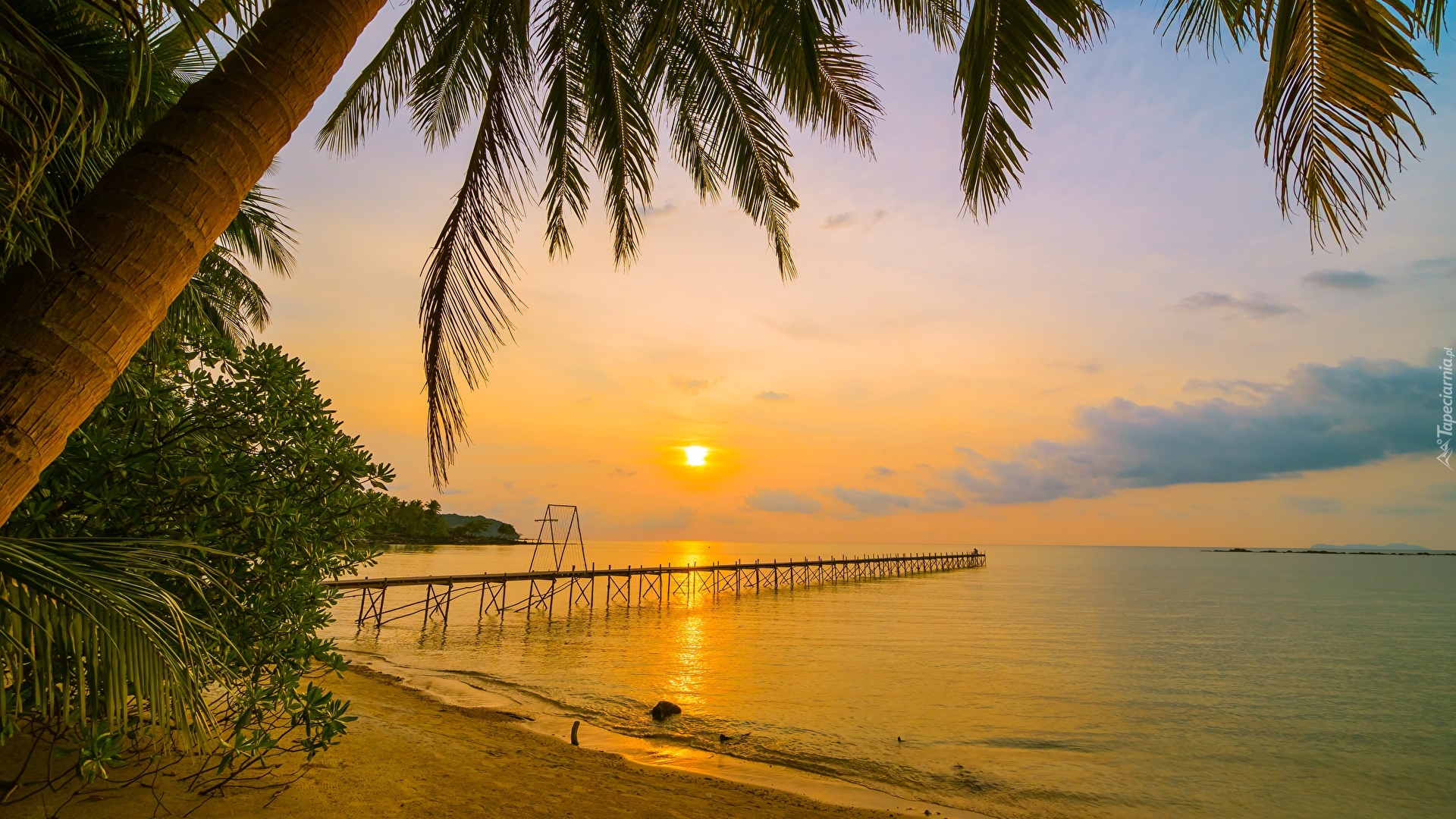Edytor tapety: Palmy nad brzegiem morza w zachodzącym słońcu