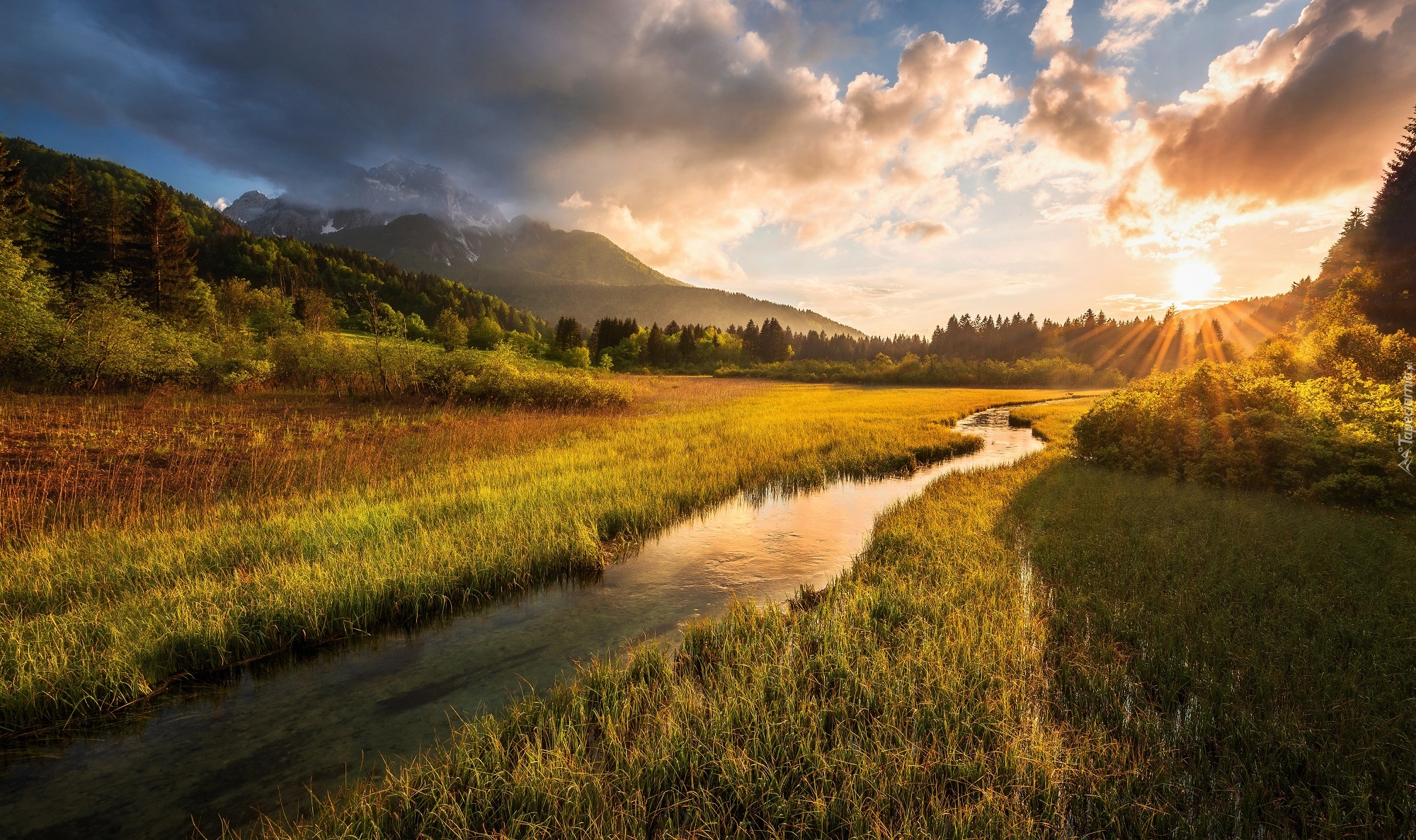 Edytor tapety: Zachód słońca nad rezerwatem przyrody Zelenci Springs