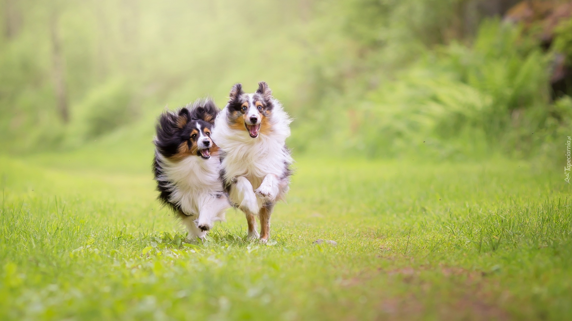 Edytor tapety: Biegnące owczarki szetlandzkie