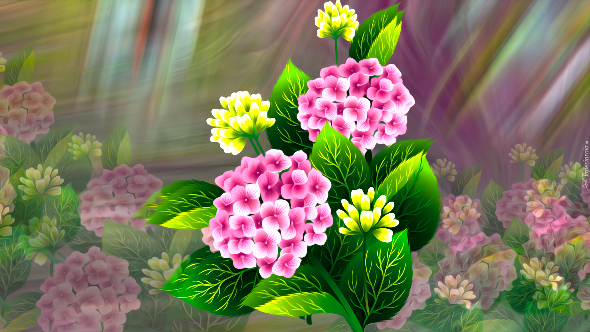 Edytor tapety: Kwiatki z liśćmi w grafice