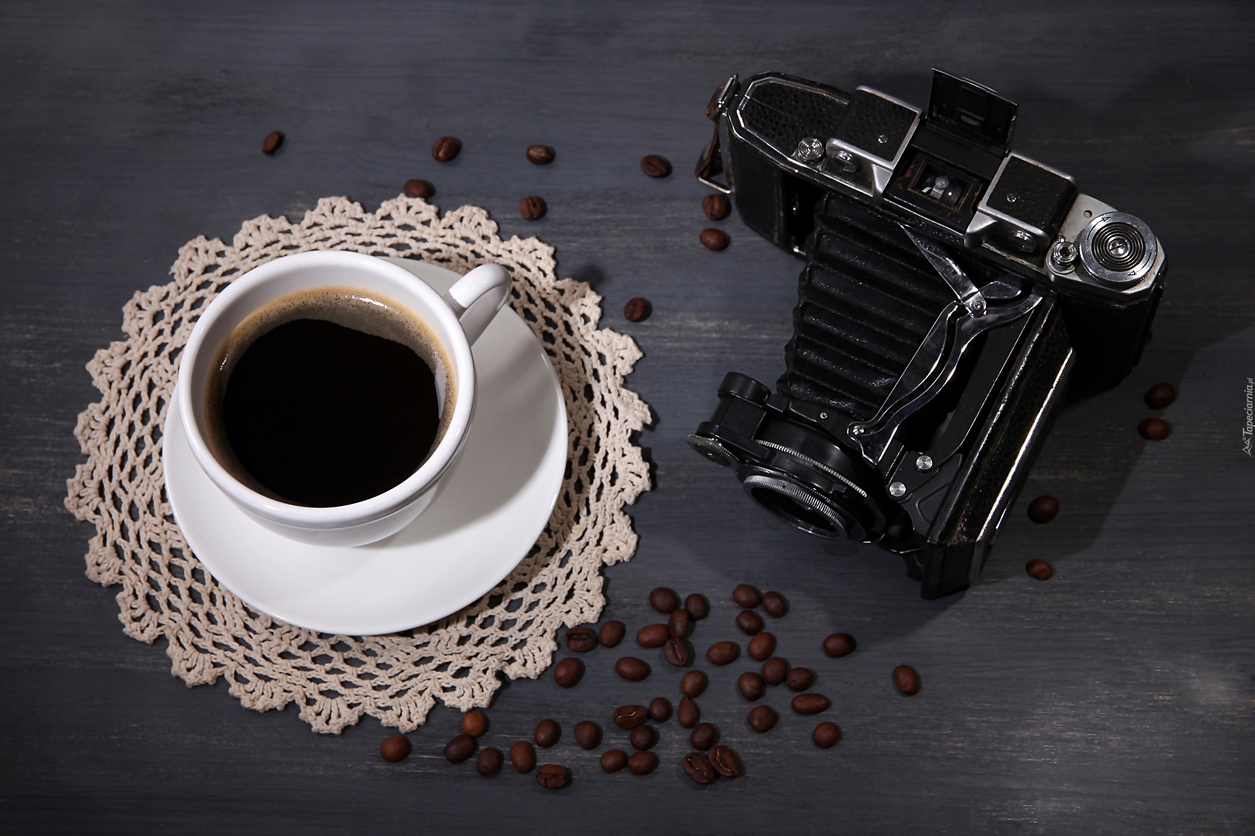 Edytor tapety: Aparat fotograficzny obok filiżanki z kawą