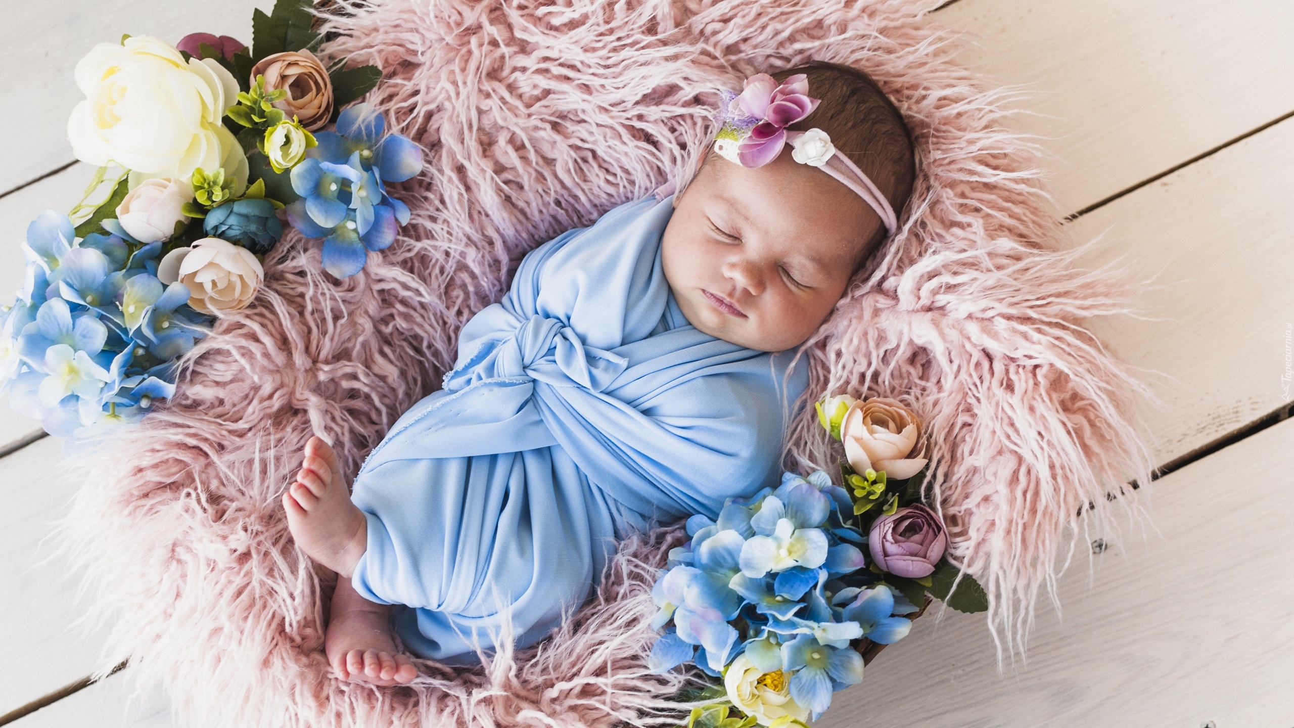 Edytor tapety: Śpiące niemowlę na kocyku