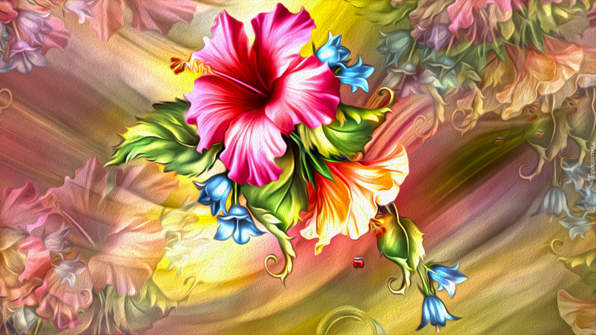 Edytor tapety: Kwiaty hibiskusa w grafice