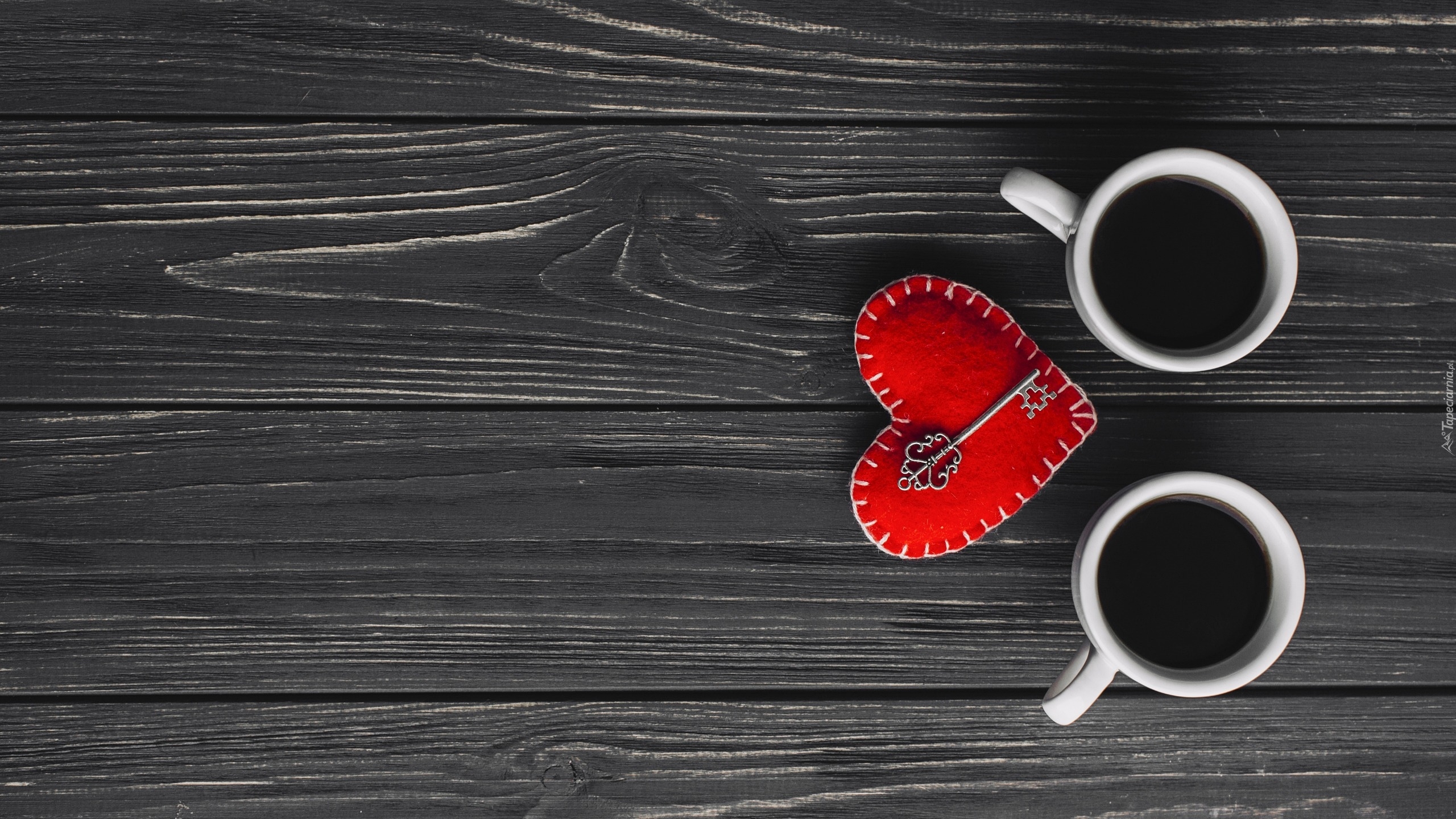 Edytor tapety: Kluczyk na sercu obok kubków z kawą