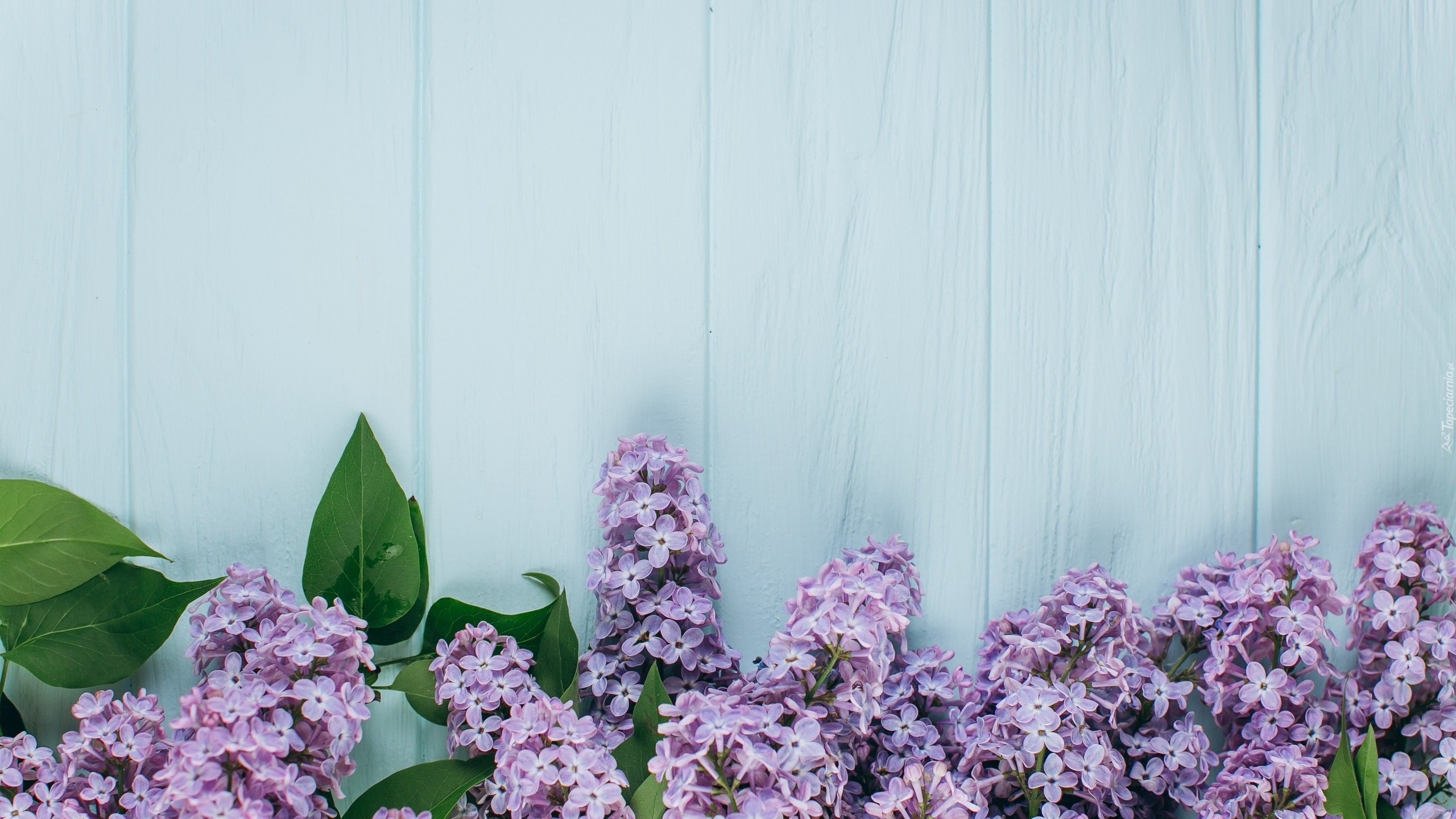 Edytor tapety: Kwiaty bzu i liście na deskach