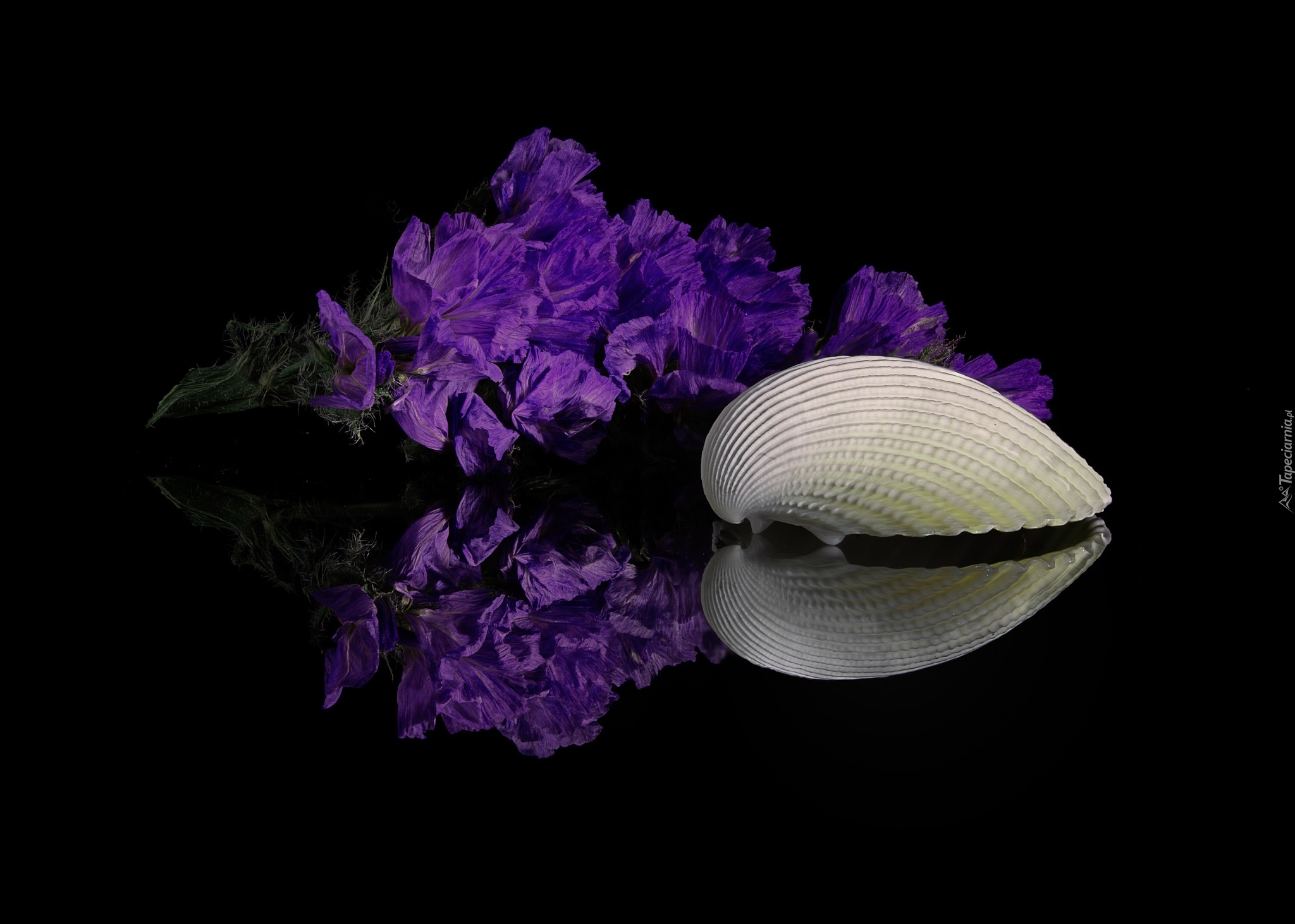 Edytor tapety: Fioletowe kwiatki i muszelka