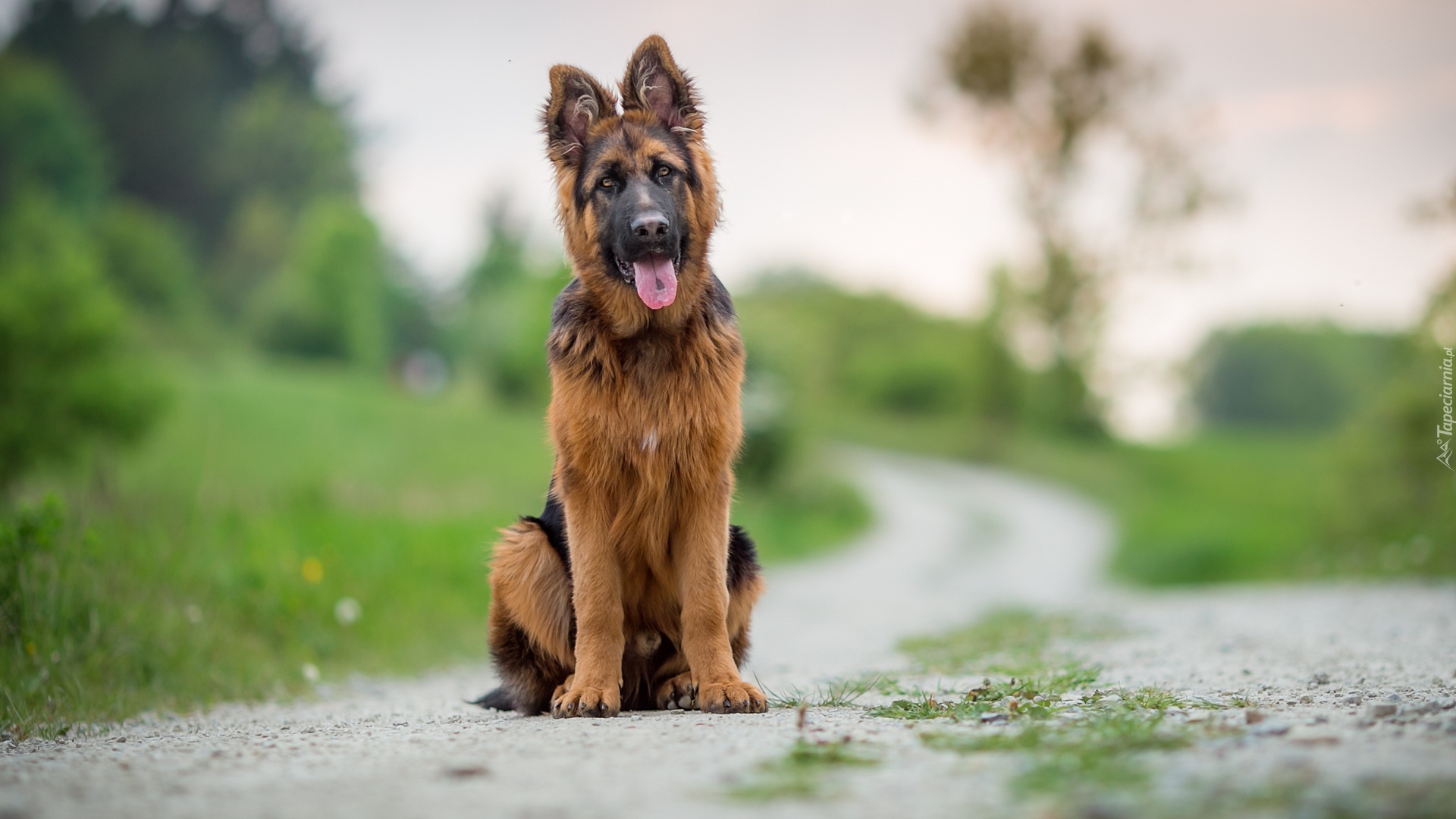 Edytor tapety: Owczarek niemiecki na polnej ścieżce