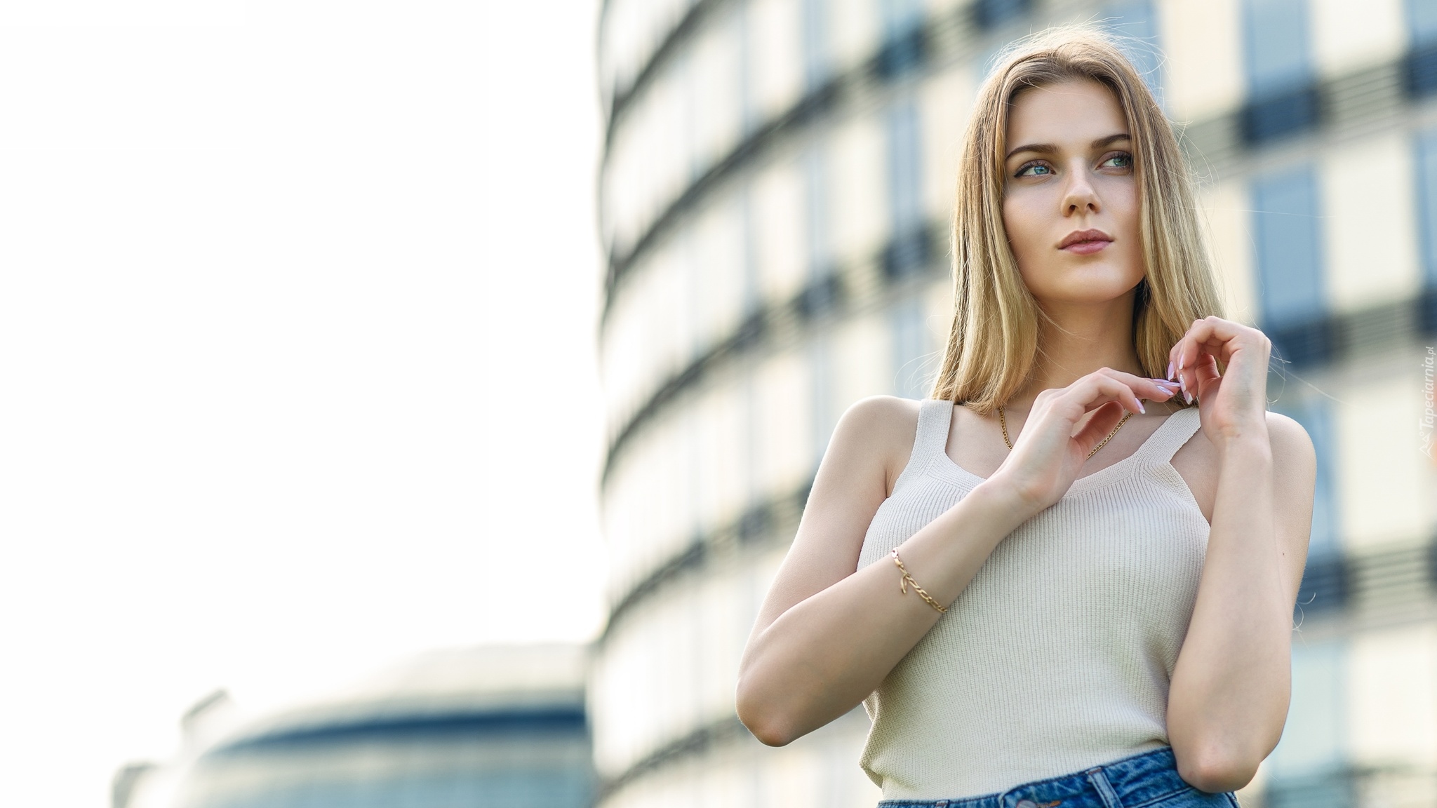 Edytor tapety: Zapatrzona długowłosa blondynka