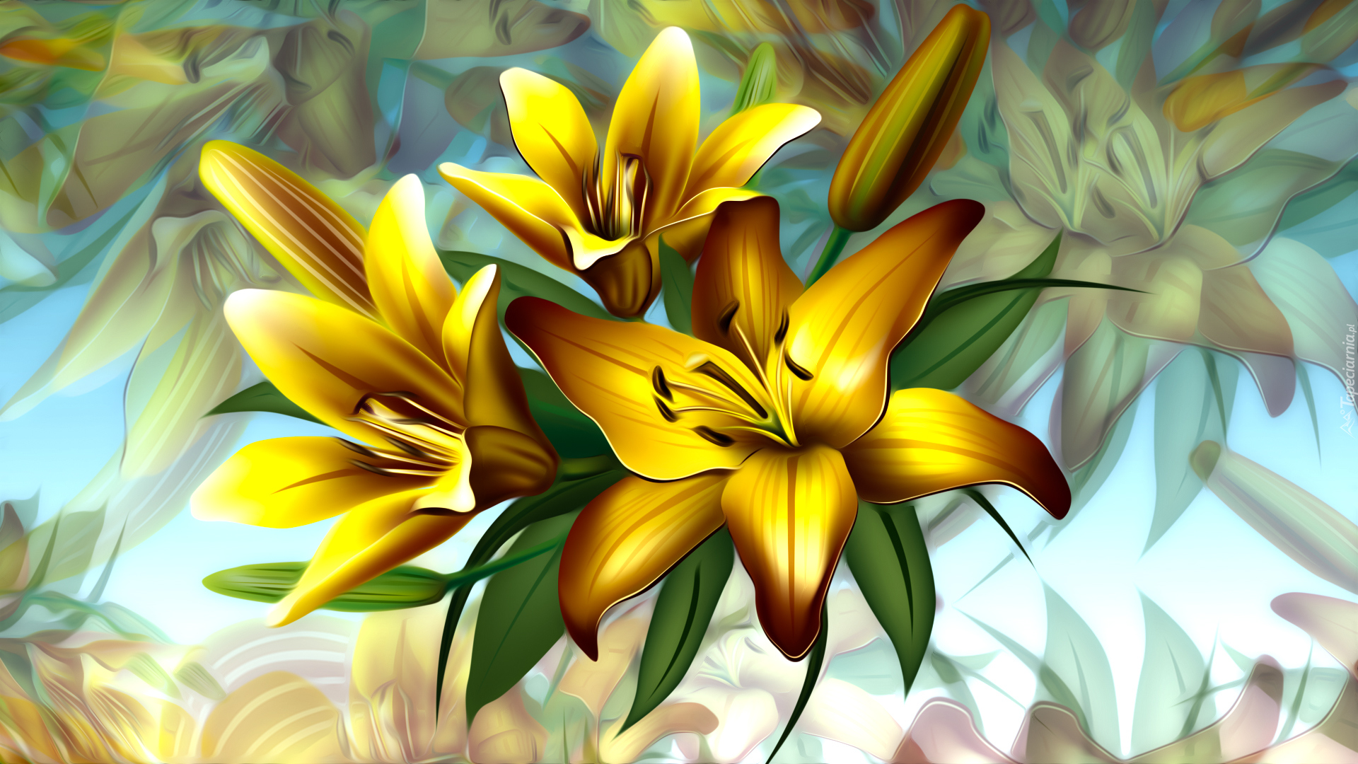 Edytor tapety: Żółte lilie z liśćmi