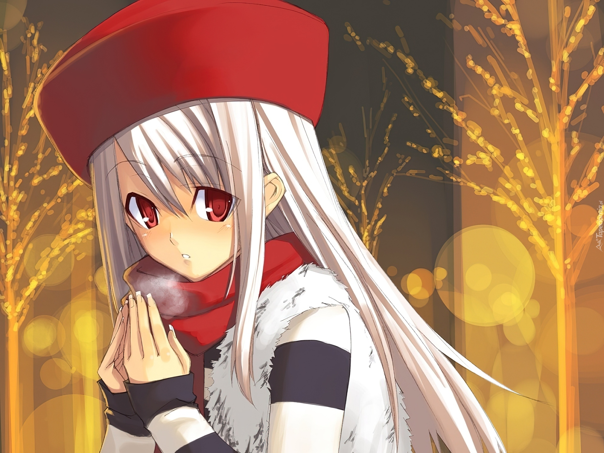 Edytor tapety: oczy, dziewczyna, zimno, Fate Stay Night, drzewa, wieczór