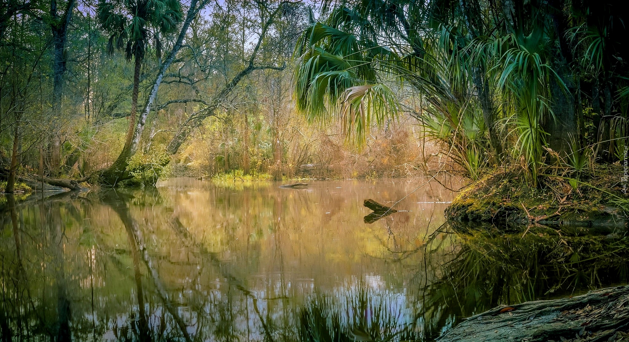 Edytor tapety: Drzewa i palmy nad rzeką