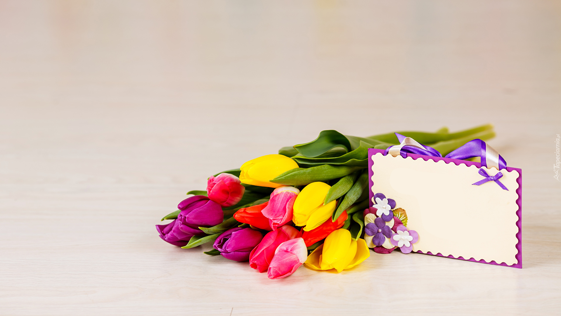 Edytor tapety: Karteczka obok bukietu tulipanów