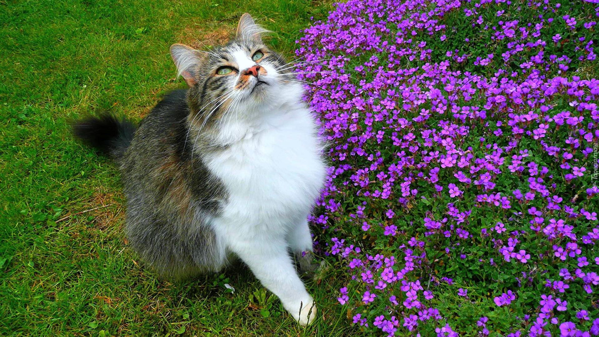 Edytor tapety: Kot przy kwiatach