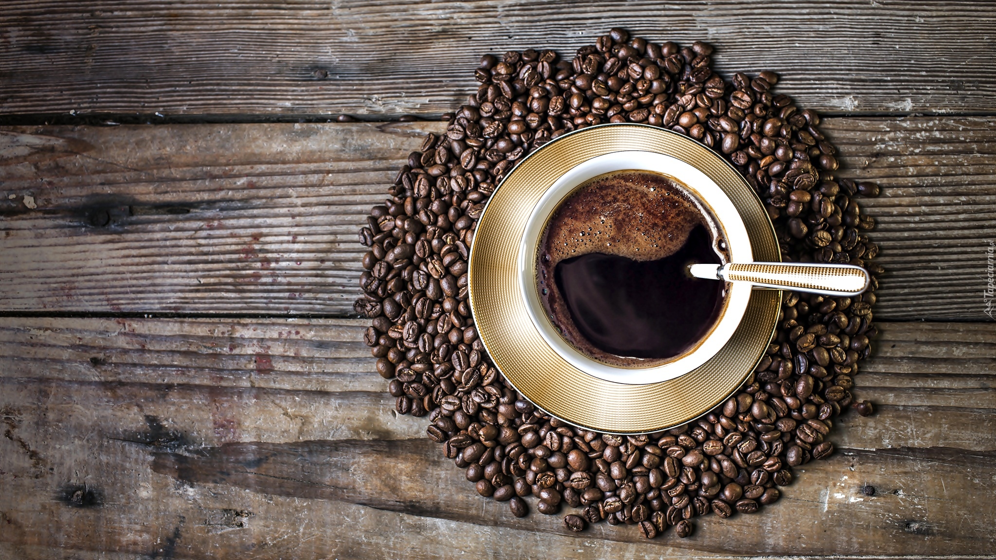 Edytor tapety: Ziarna kawy ułożone wokół filiżanki