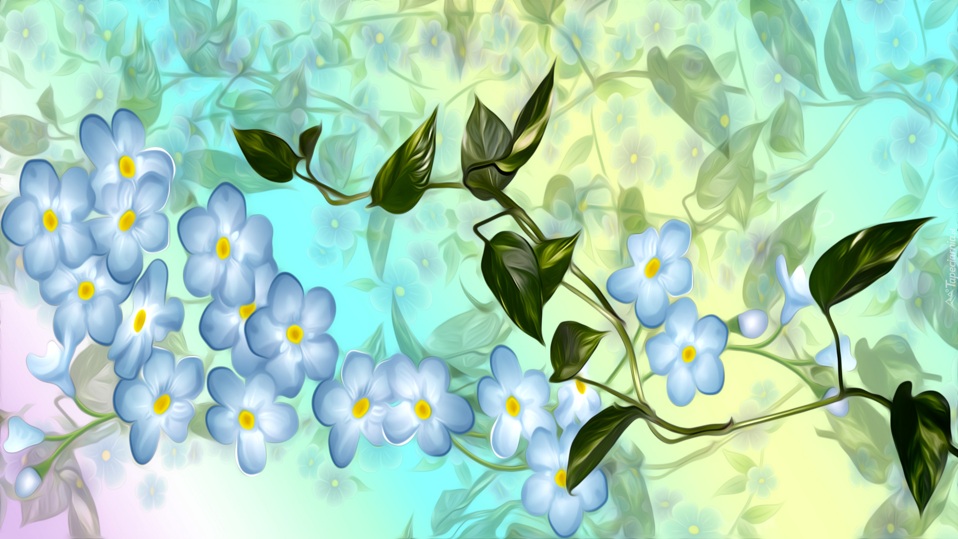 Edytor tapety: Niebieskie kwiatki w grafice