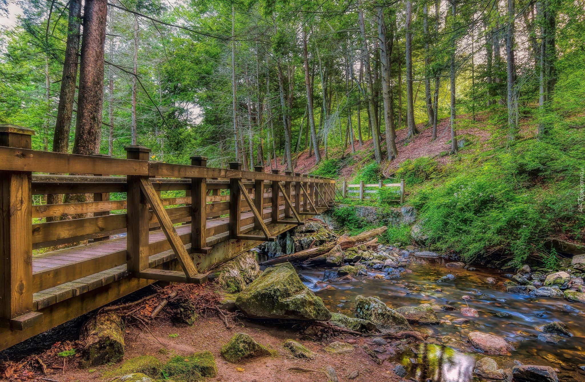 Edytor tapety: Mostek nad rzeczką w lesie