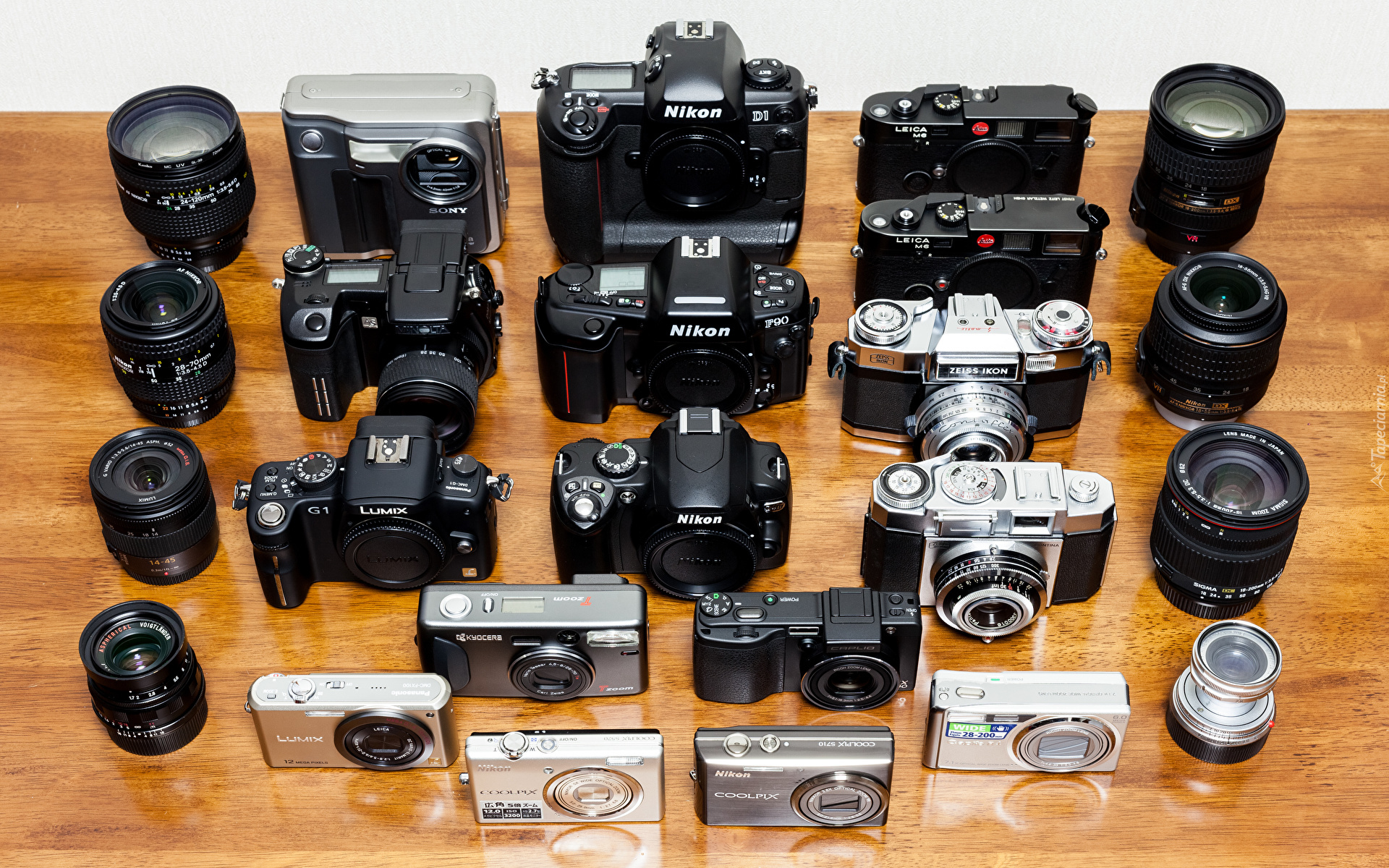 Edytor tapety: Różne marki aparatów fotograficznych i obiektywów